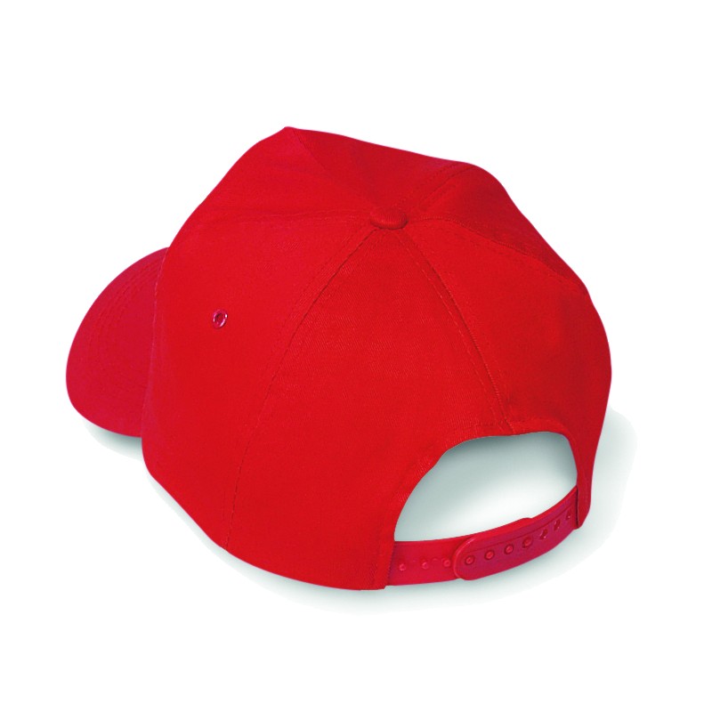 Casquette baseball 5 pans en coton 160 gr/m2 avec patte de réglage plastique. 2 œillets métalliques de couleur assortie. Taille 7 1/4.