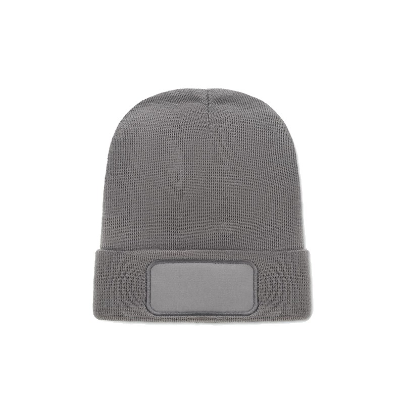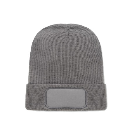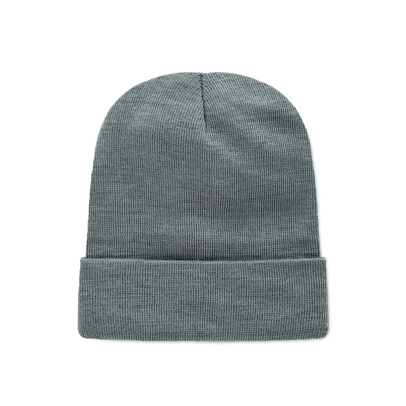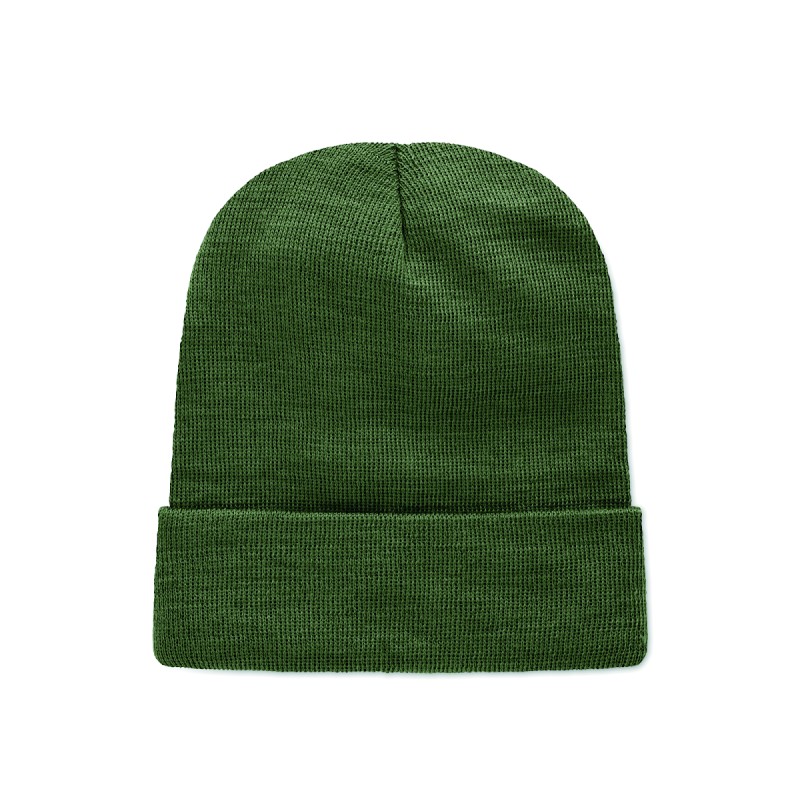 Bonnet tricoté unisexe en polyester doux et extensible RPET avec revers et écusson.
