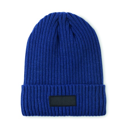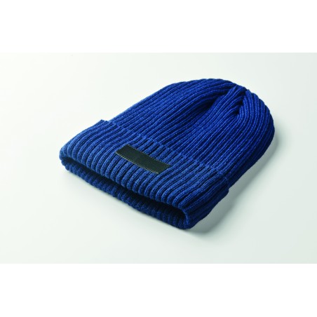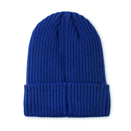 Bonnet tricoté unisexe en acrylique à l'extérieur et en polyester à l'intérieur, revers. Taille unique.