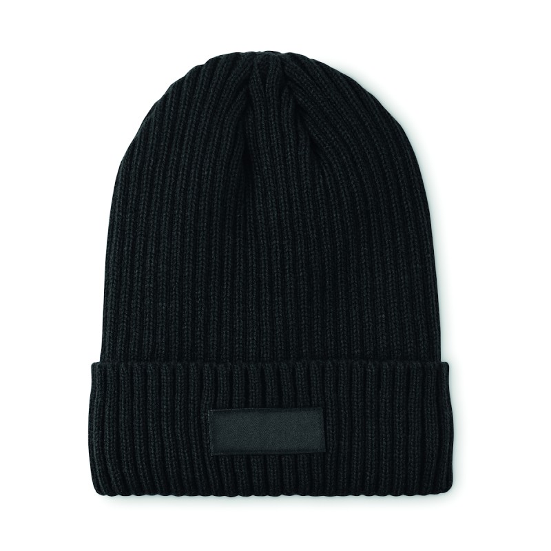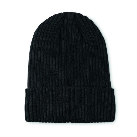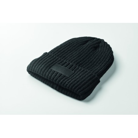 Bonnet tricoté unisexe en acrylique à l'extérieur et en polyester à l'intérieur, revers. Taille unique.