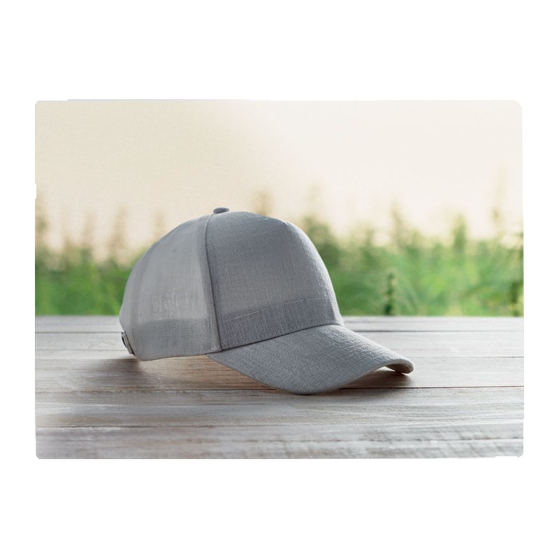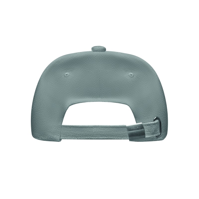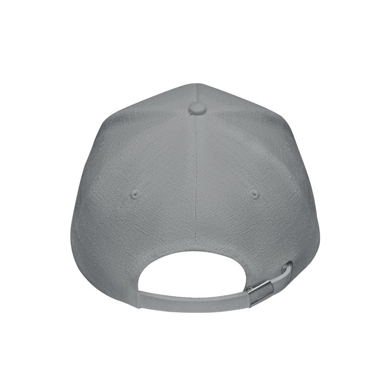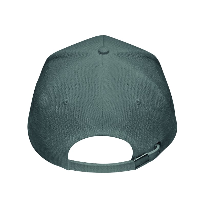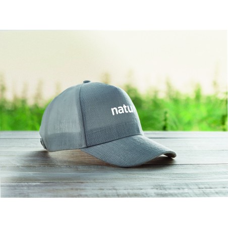 Casquette de baseball 5 pans en tissu 100% chanvre 370 gr/m² avec clip en laiton sur fermeture à sangle réglable. 5 œillets surpiqués de couleur assortie. Taille 7 1/4.