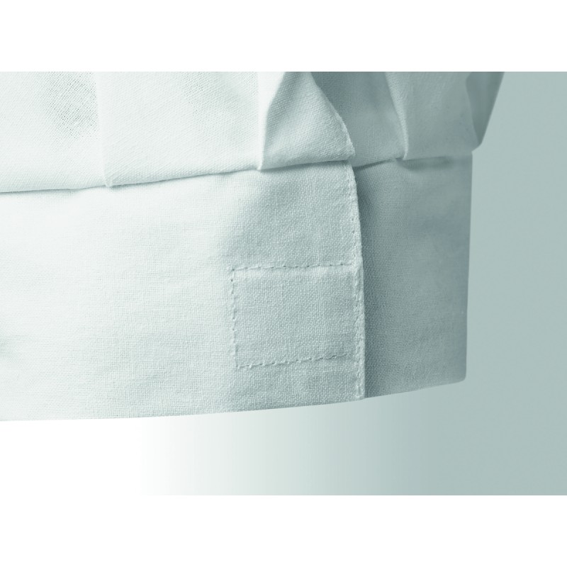 Toque de chef en coton 130 gr/m² et fermeture autoagrippante.