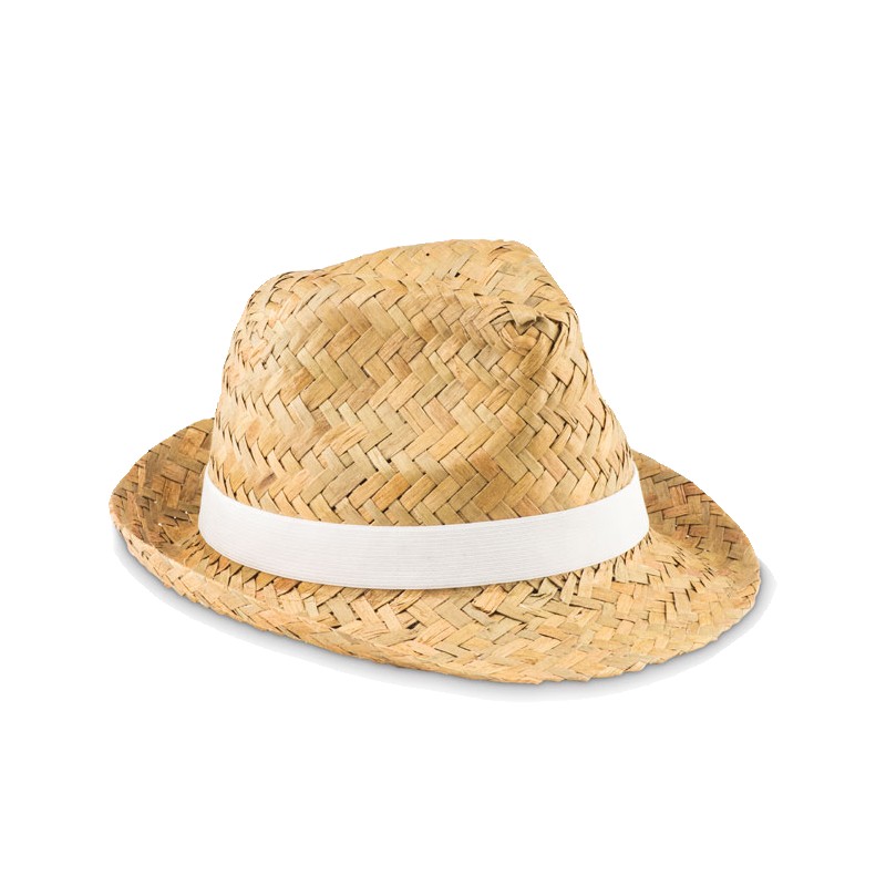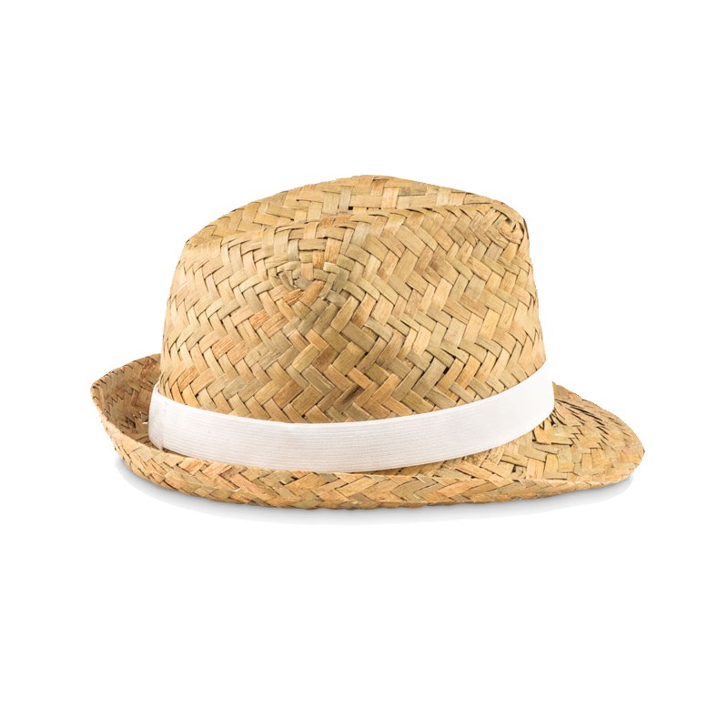 Chapeau en paille naturelle avec bandeau élastique non cousu. Pour les commandes non imprimées, le bandeau sera fourni non attaché à l'article.