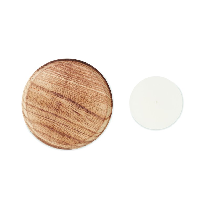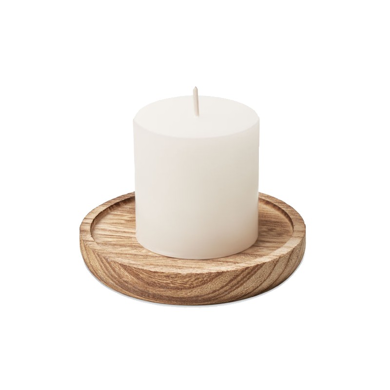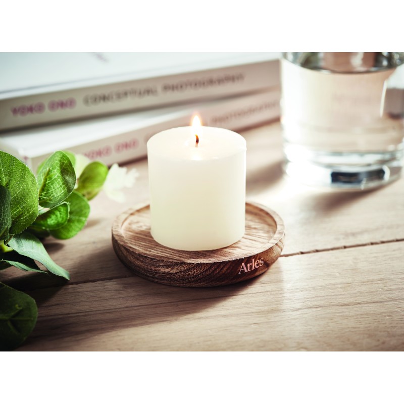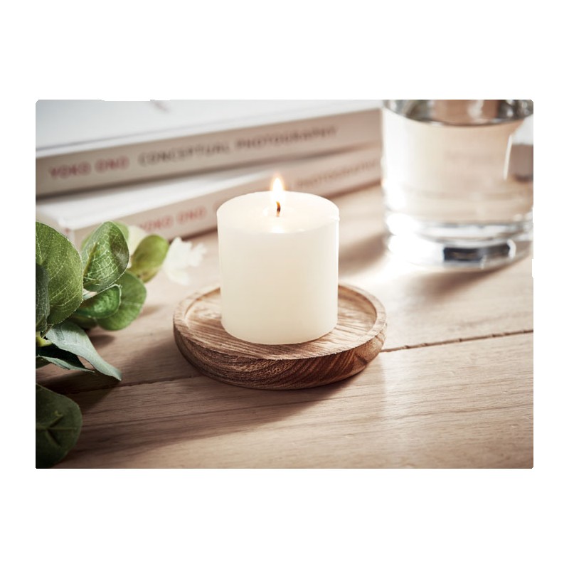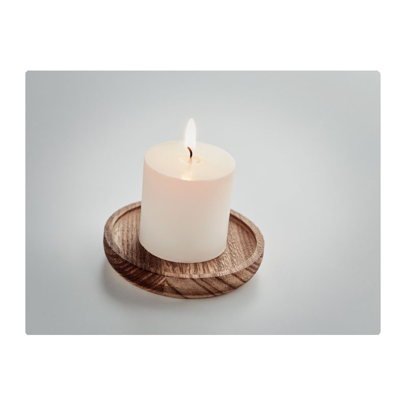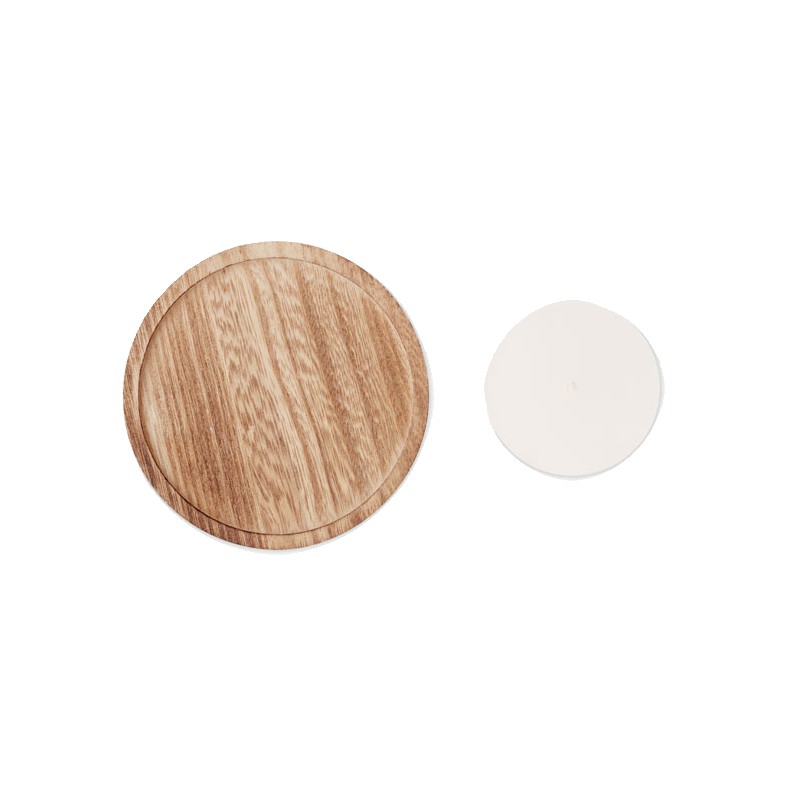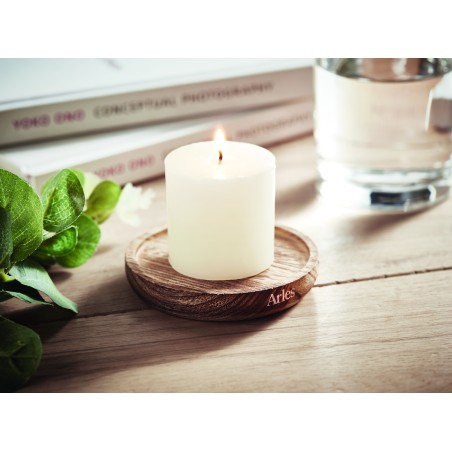 Bougeoir en peuplier de forme ronde avec bougie parfumée à la vanille. 88gr.