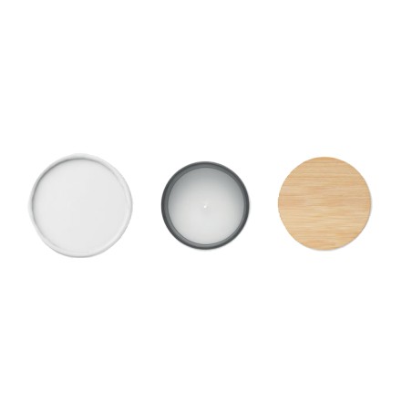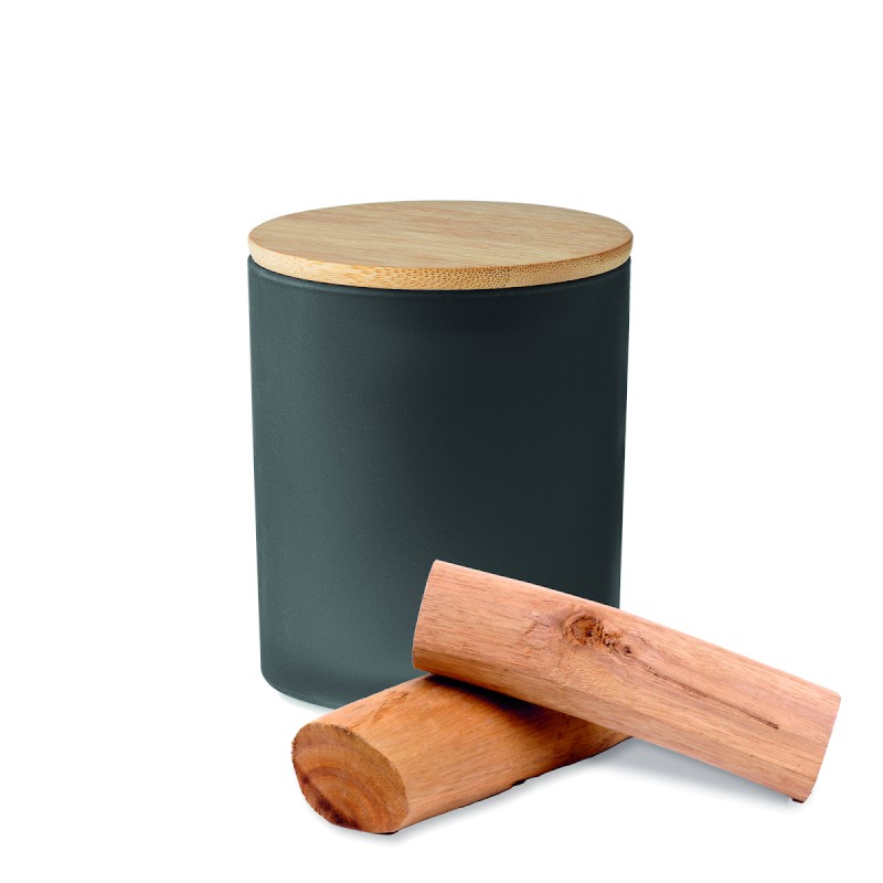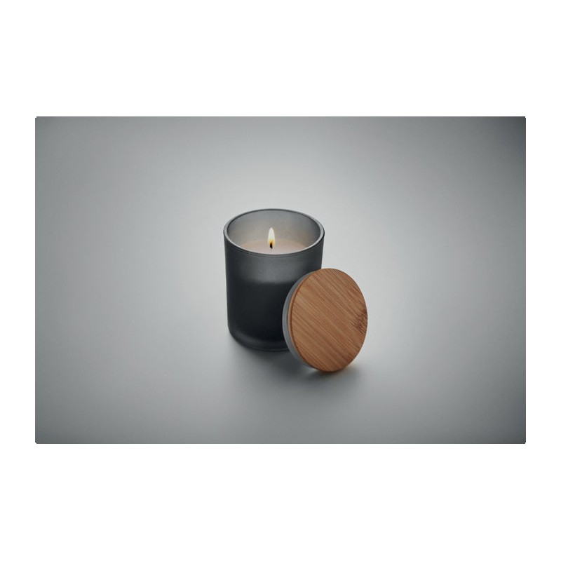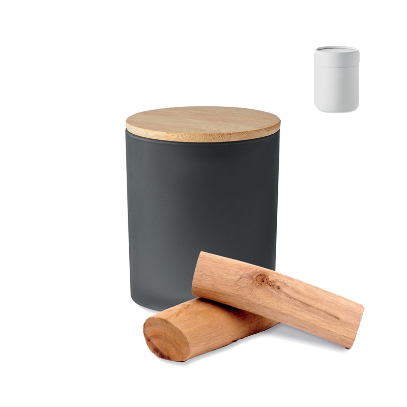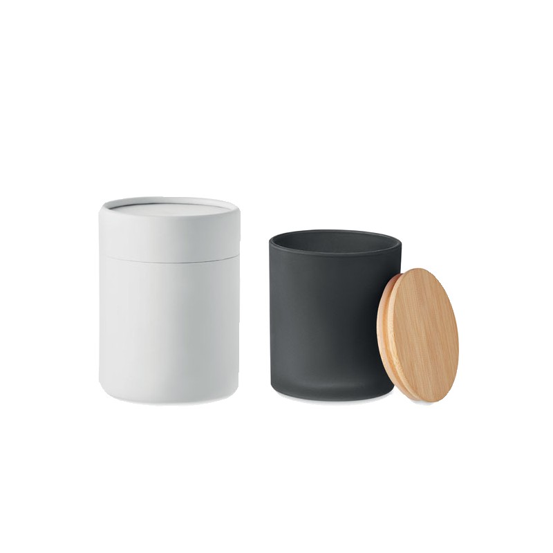 Bougie en cire végétale parfumée dans un pot en verre dépoli avec couvercle en bambou. 120 gr. Durée de combustion : 20 heures. Présentée dans une boîte cadeau en tube de papier. Le bambou est un produit naturel, et présente de légères variations de couleur, de décoration et de tailles.