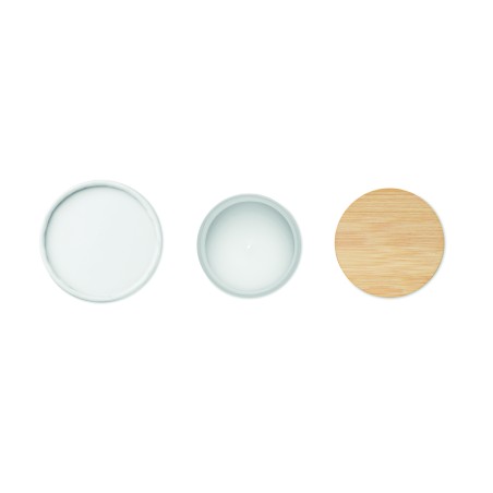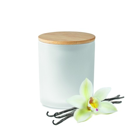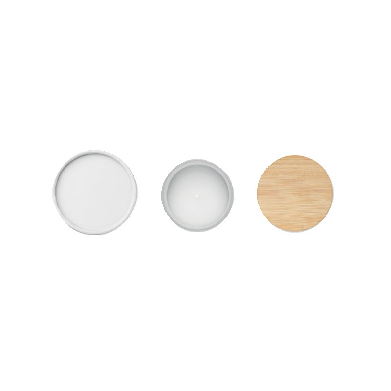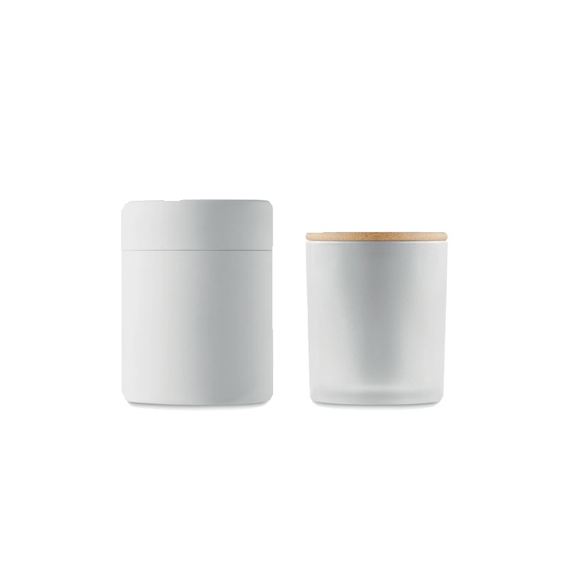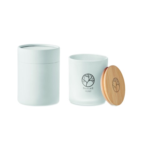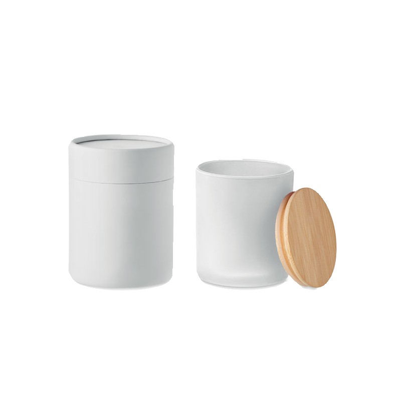 Bougie en cire végétale parfumée dans un pot en verre dépoli avec couvercle en bambou. 120 gr. Durée de combustion : 20 heures. Présentée dans une boîte cadeau en tube de papier. Le bambou est un produit naturel, et présente de légères variations de couleur, de décoration et de tailles.