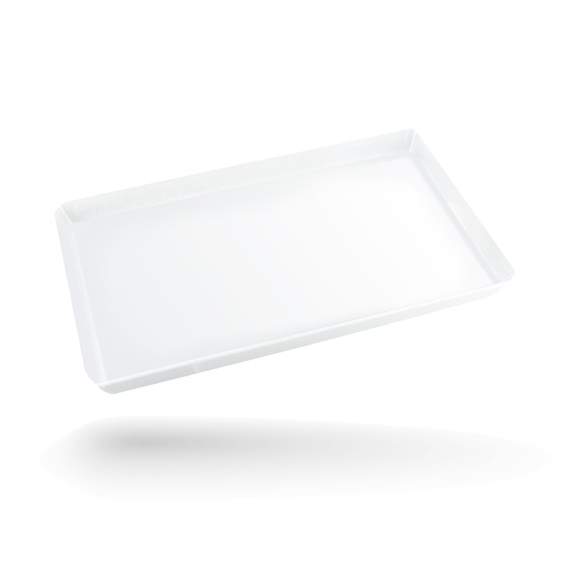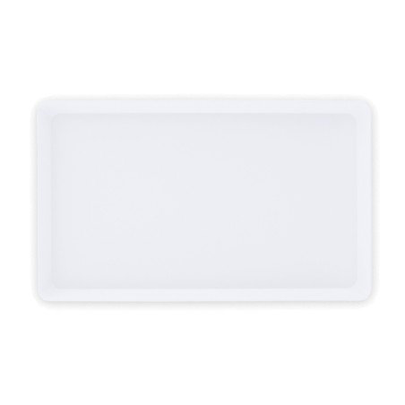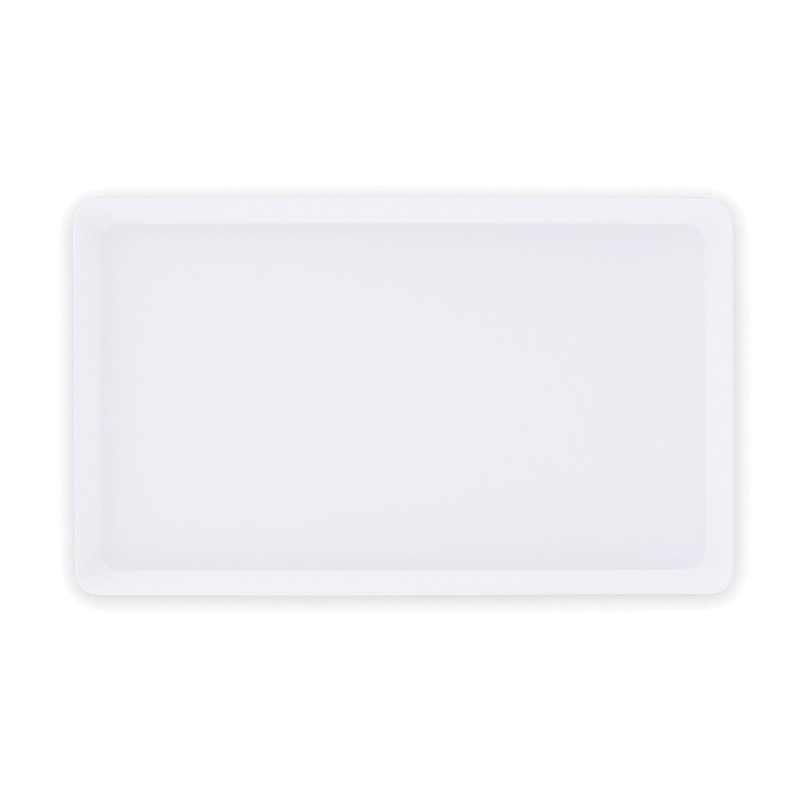 Mini plateau en plastique rigide avec rebords. Pratique au bureau comme à la maison (vendu sans tasses). Marquage Quadri InMold (IML) sur coloris blanc (01) uniquement, dès 500 pcs. Livraison en 5 semaines.