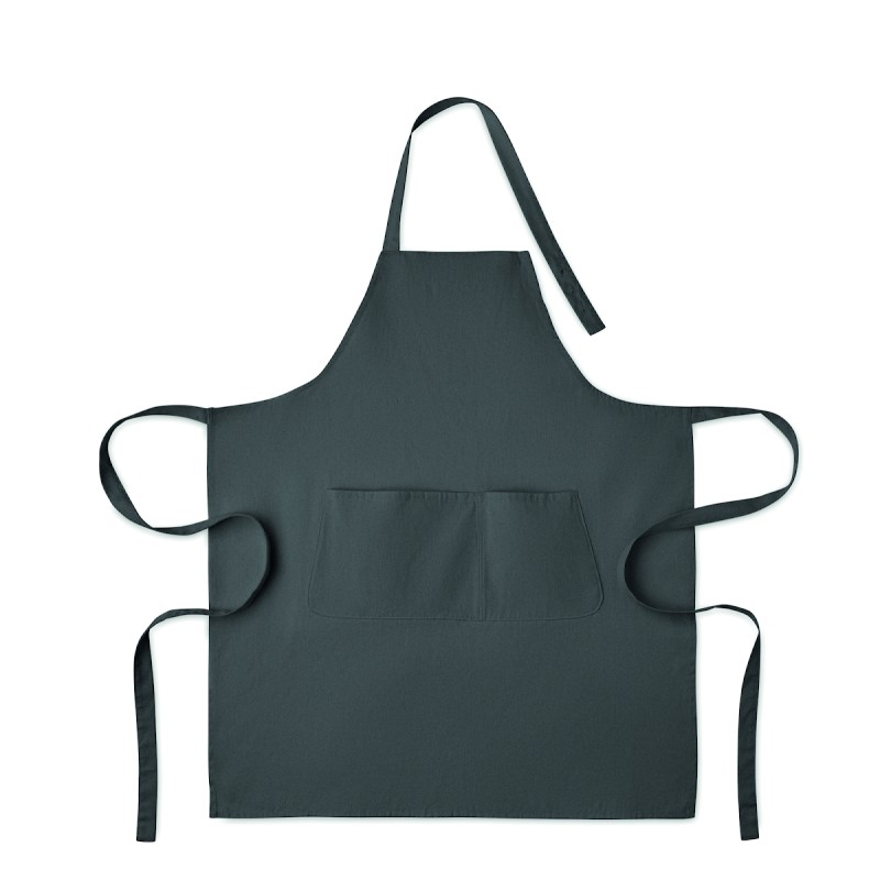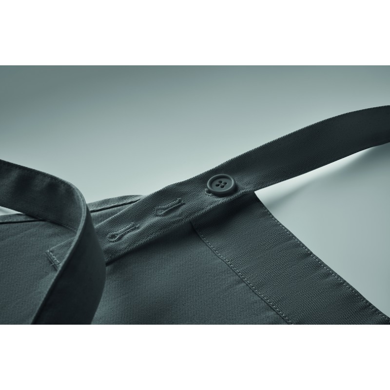 Tablier à bavette réglable avec 1 grande poche frontale à 2 compartiments en coton biologique 240 gr/m². Avec bouton de réglage sur le tour de cou. Ce produit est certifié OEKO-TEX® STANDARD 100.