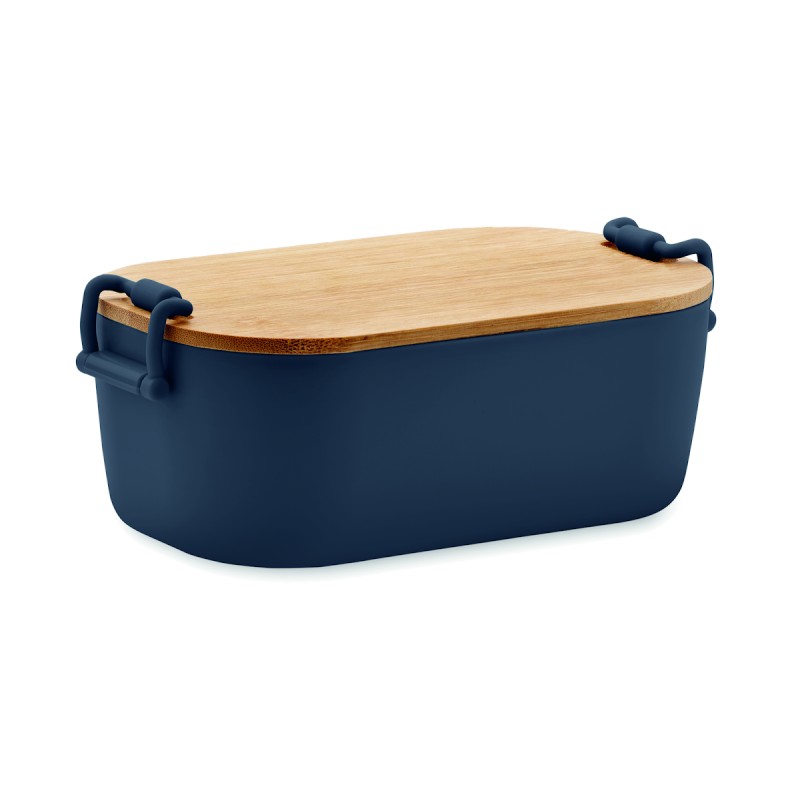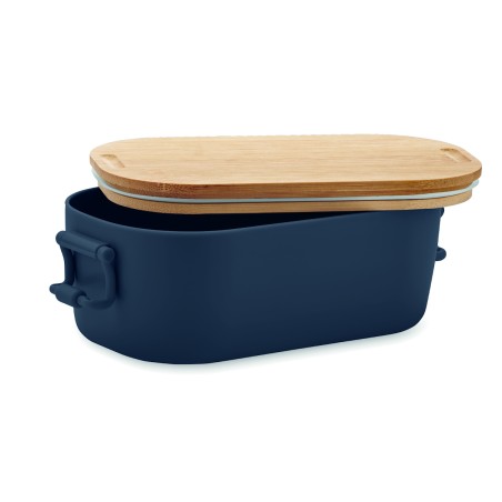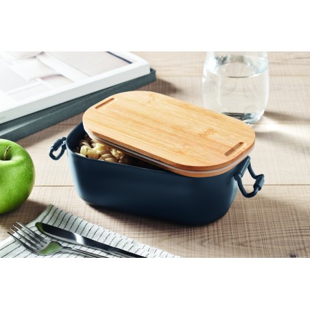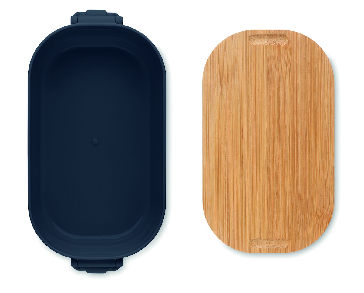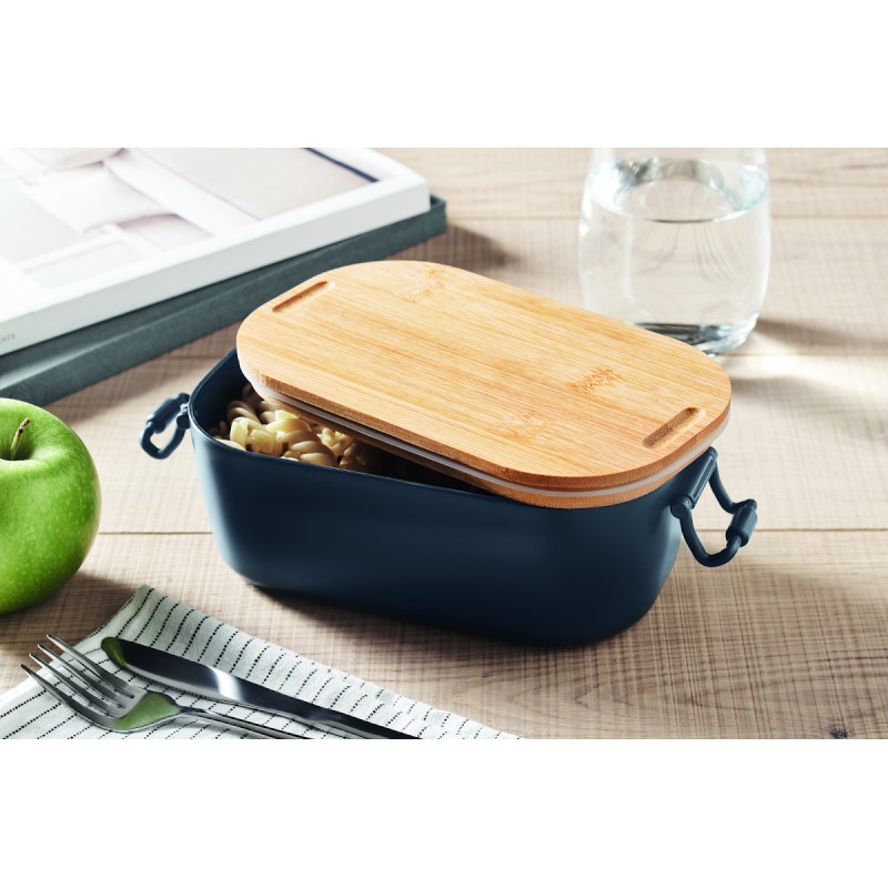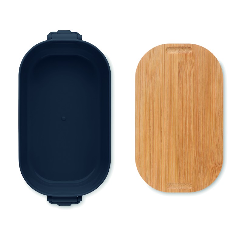 Boîte à lunch en PP avec 2 fermoirs latéraux et couvercle en bambou. Capacité 700 ml.