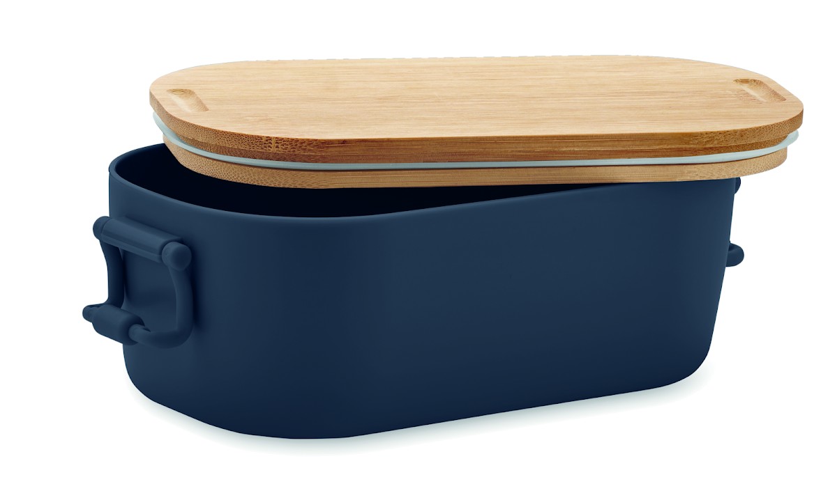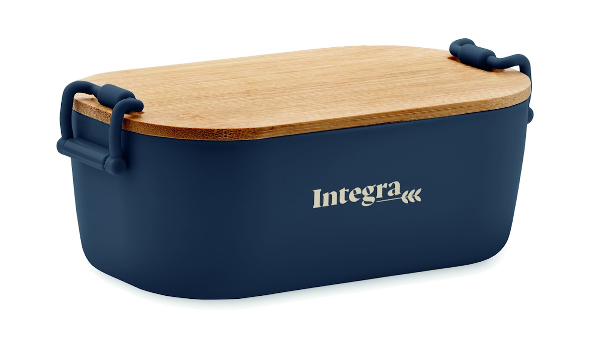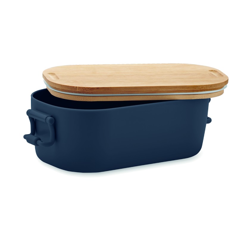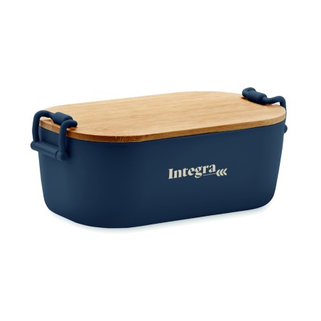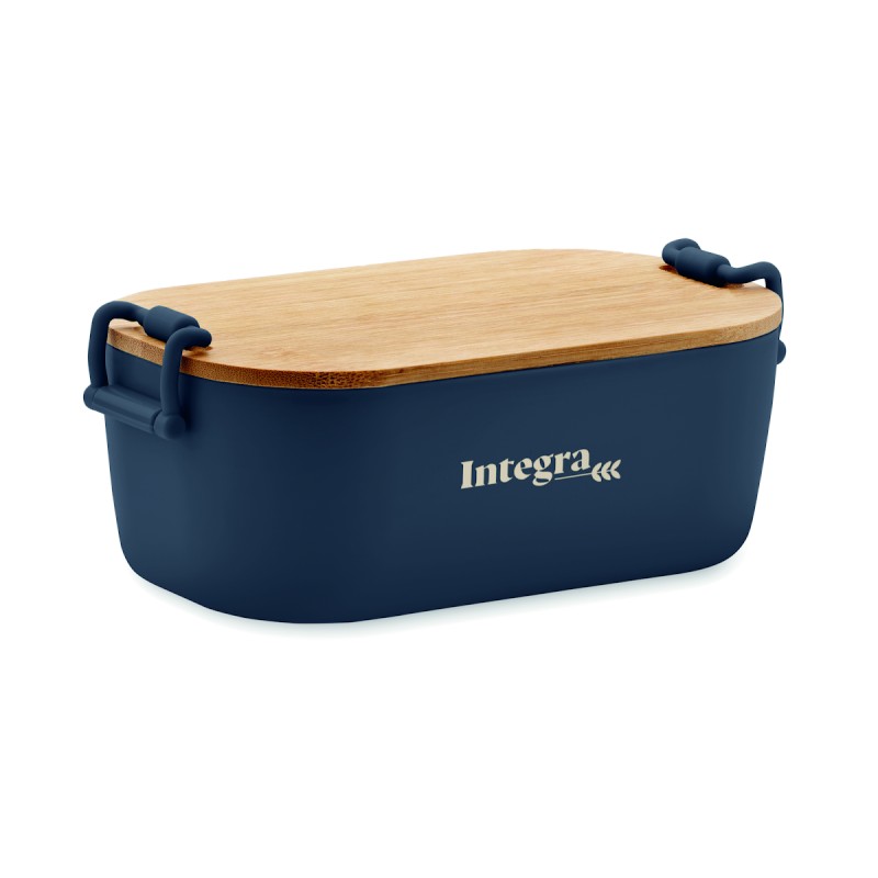 Boîte à lunch en PP avec 2 fermoirs latéraux et couvercle en bambou. Capacité 700 ml.