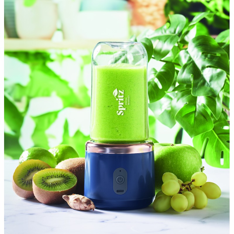 Mixeur à smoothie portable, mixeur à 6 lames et 2 tasses à jus amovibles en PCTG (sans BPA) avec sangle et couvercle. Batterie rechargeable USB 1200 mAh. Capacité : 400 ml (2 x).
