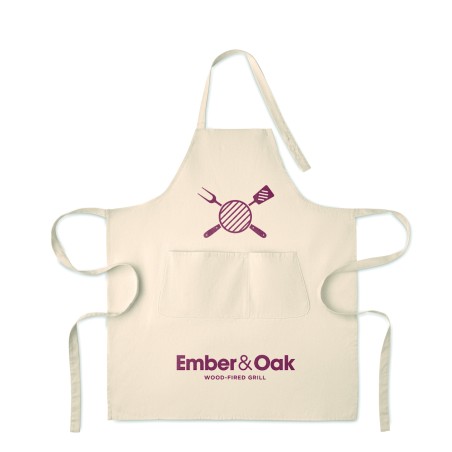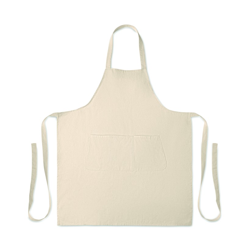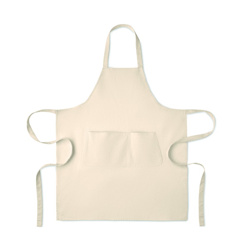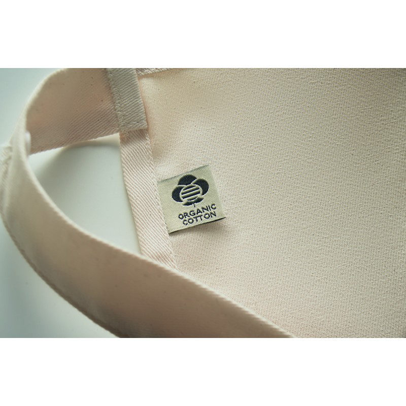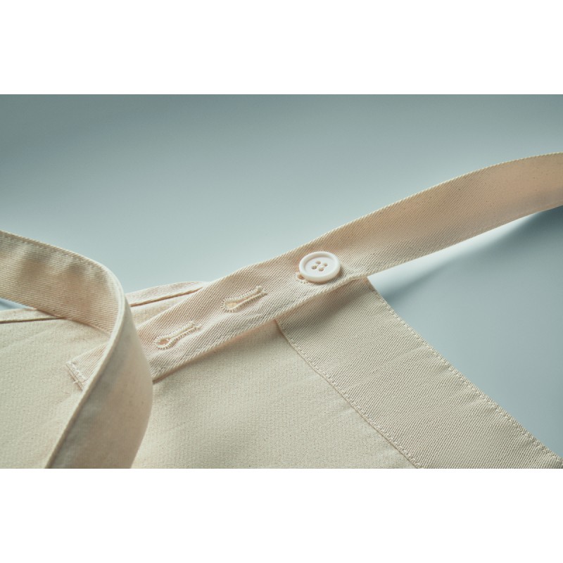 Tablier à bavette réglable avec 1 grande poche frontale à 2 compartiments en coton biologique 240 gr/m². Avec bouton de réglage sur le tour de cou. Ce produit est certifié OEKO-TEX® STANDARD 100.