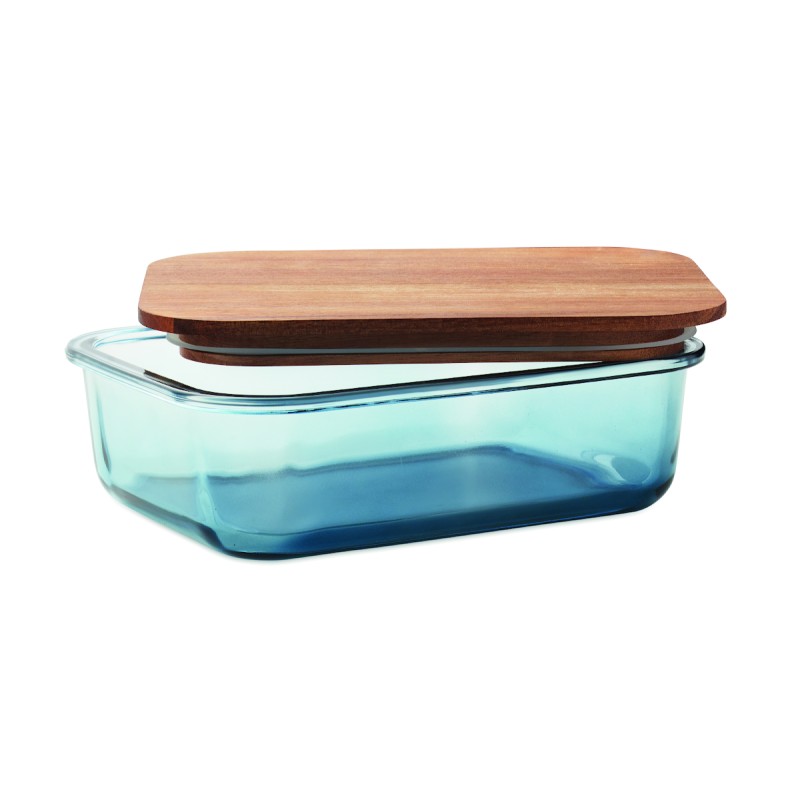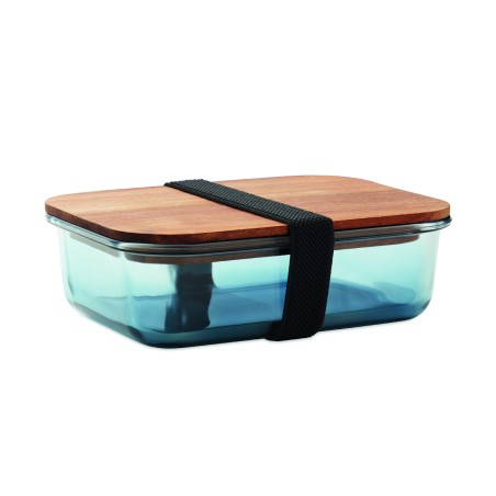 Boîte à lunch en verre avec couvercle en bois d'acacia et fermeture à élastique en RPET. Capacité : 800 ml FSC®-certified | FSC 100%, W16.3, FSC-C213206