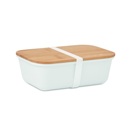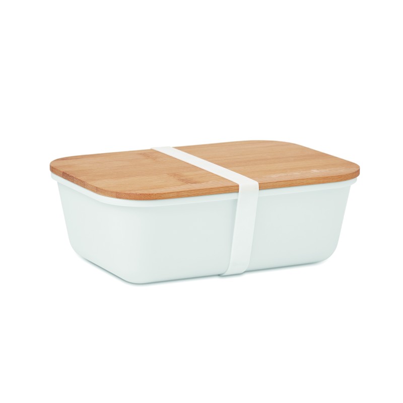 Boîte à lunch ou à sandwich en PP avec couvercle en bambou. Contenance : 1L. Le bambou est un produit naturel, et présente de légères variations de couleur, de décoration et de tailles.