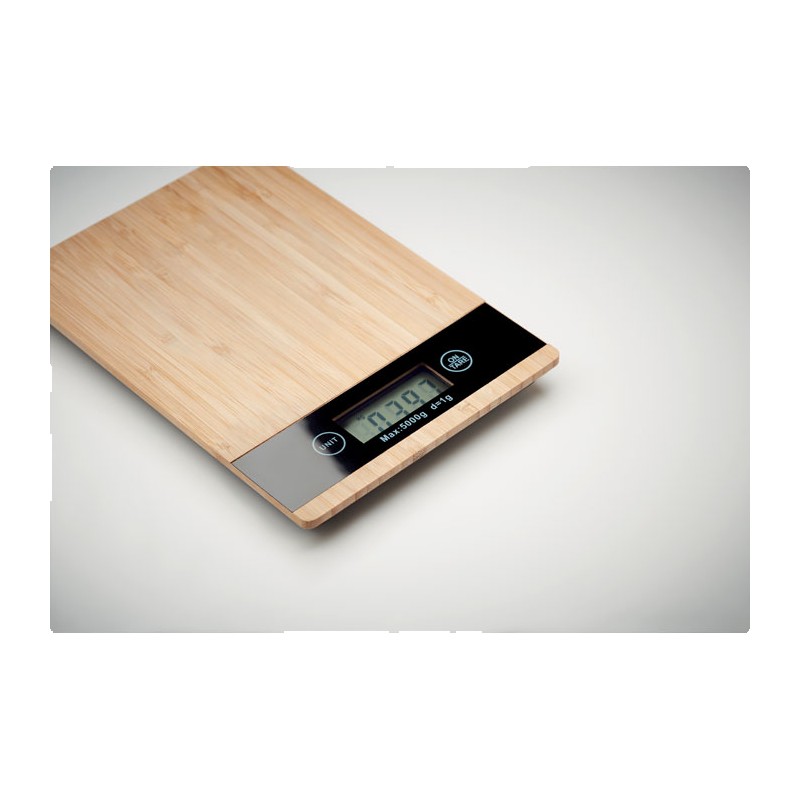 Balance de cuisine numérique en bambou. Parfaite pour mesurer les ingrédients et les aliments au poids dans la cuisine lorsque vous préparez un gâteau ou des plats délicieux. La balance a une capacité maximale de 5 kg. Ne comprend pas 2 piles AAA. Le bambou est un produit naturel, il peut y avoir de légères variations de couleur et de taille par article, ce qui peut affecter le résultat final de la décoration. FSC®-certified | FSC 100%, N5.7, FSC-C213206