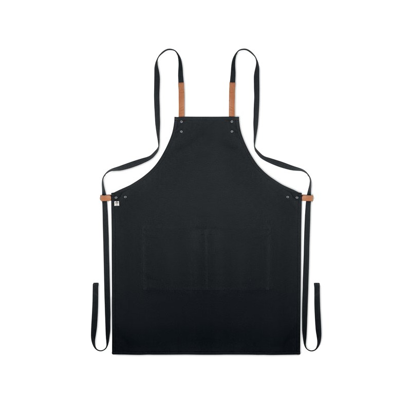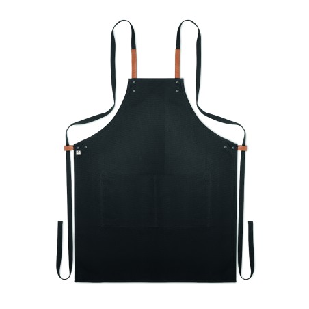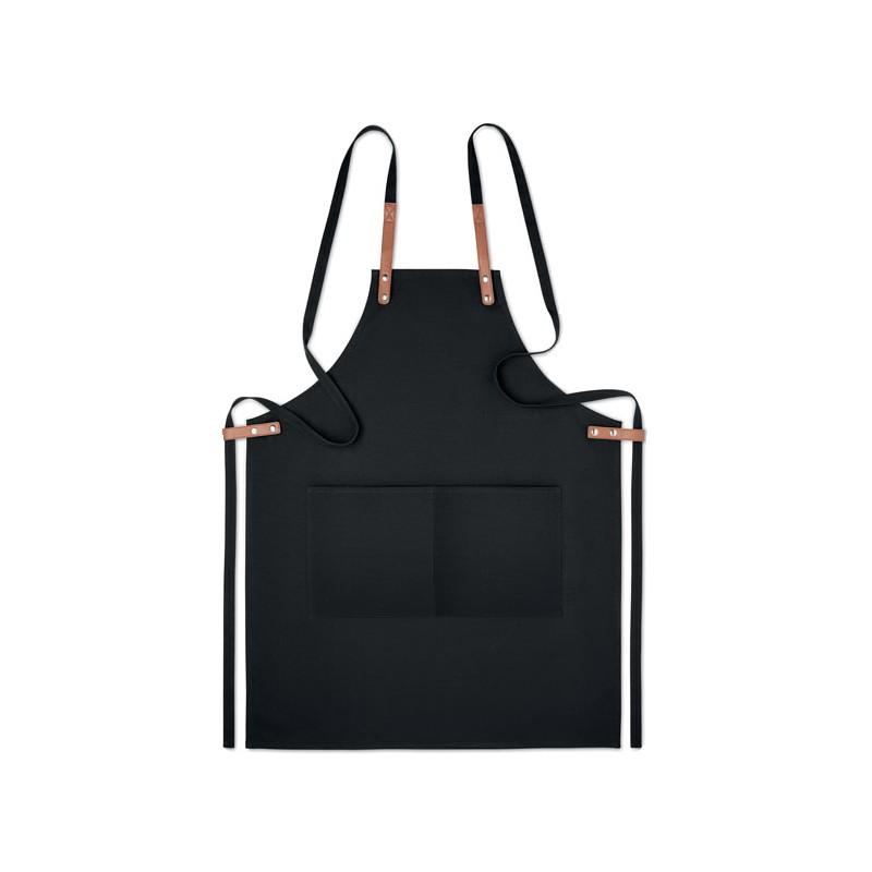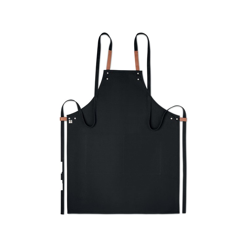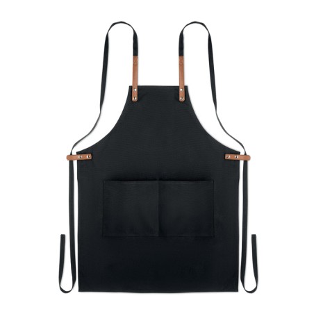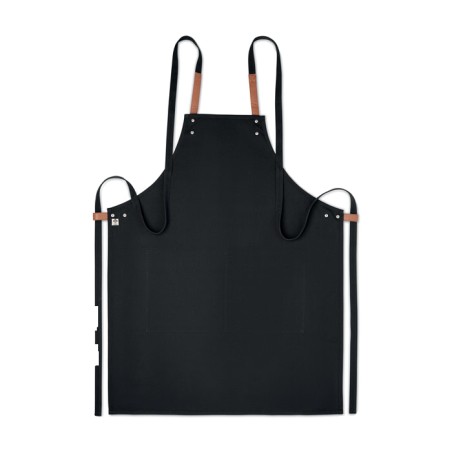 Tablier de cuisine réglable avec 2 poches frontales en coton/toile organique de 340 gr/m². Présenté dans une boîte individuelle.