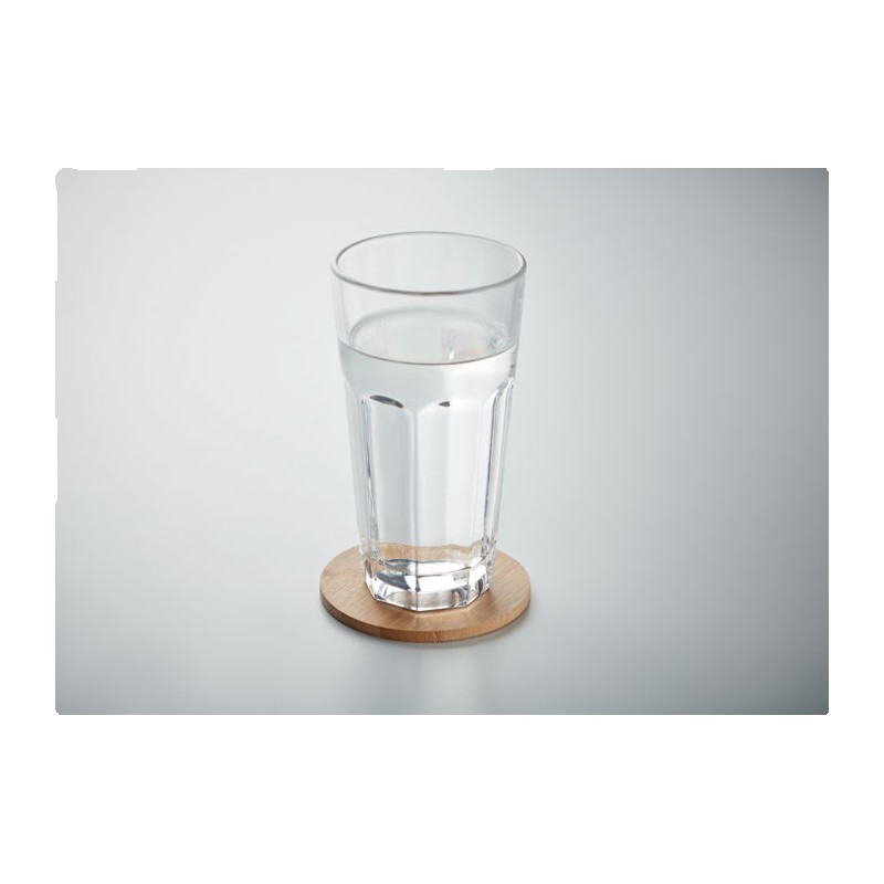 Sous-verre rond en bambou. Le bambou est un produit naturel, et présente de légères variations de couleur, de décoration et de tailles.