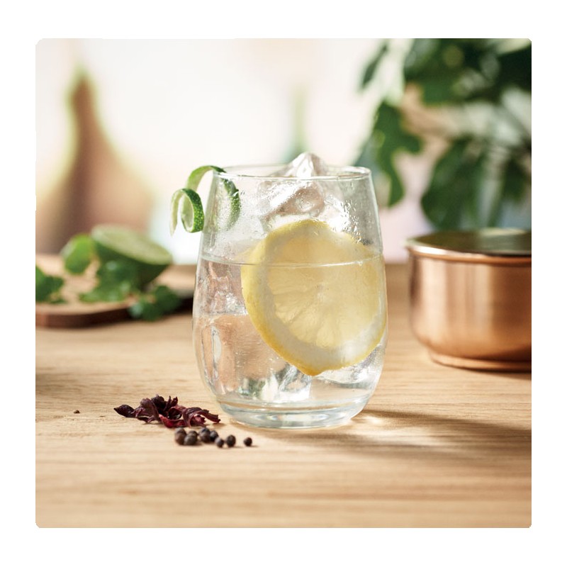 Verre en verre recyclé. Capacité : 420 ml.