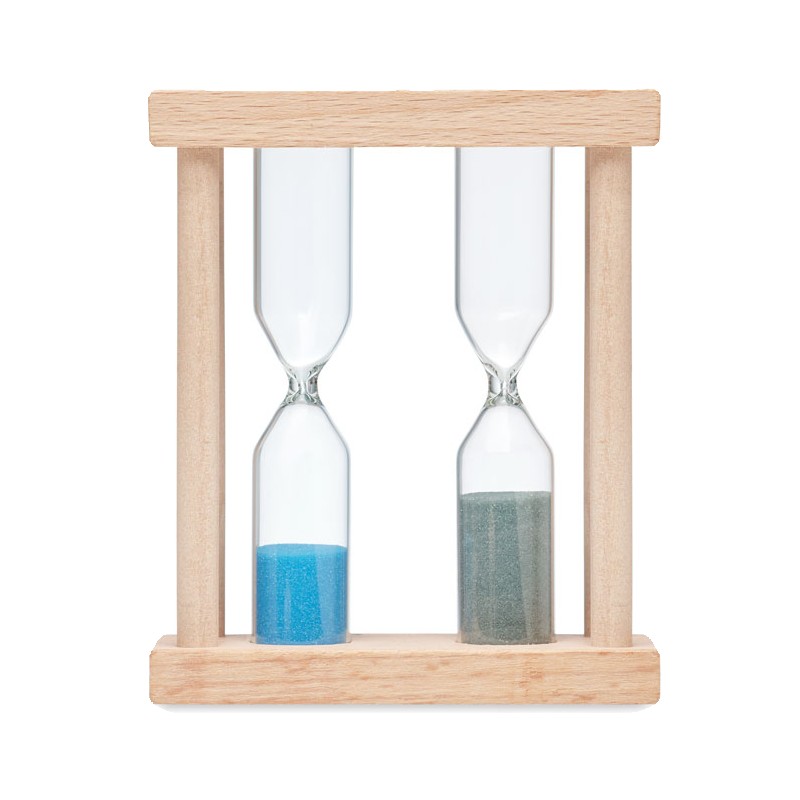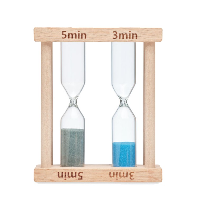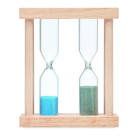Jeu de 2 sabliers en bois avec 2 minuteurs différents (environ 3 et 5 minutes).
