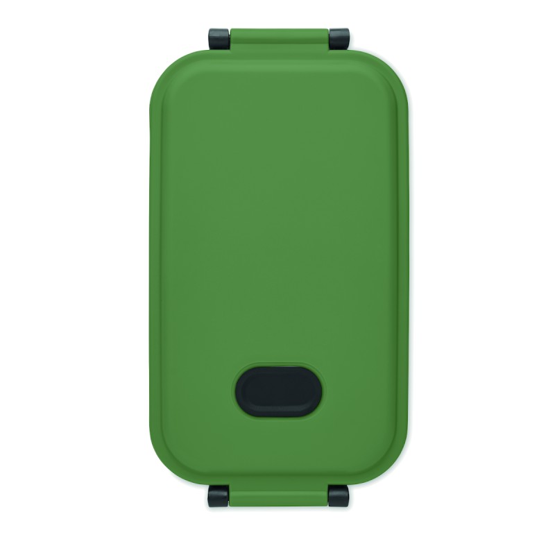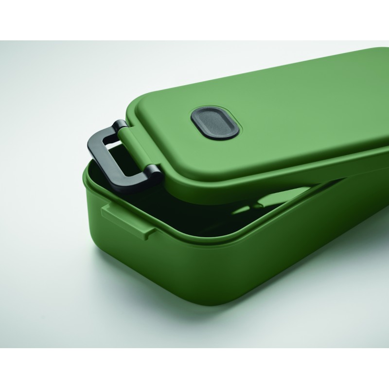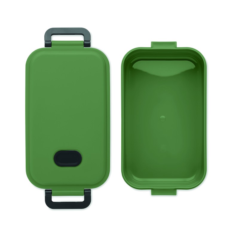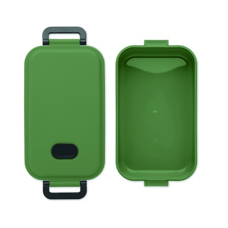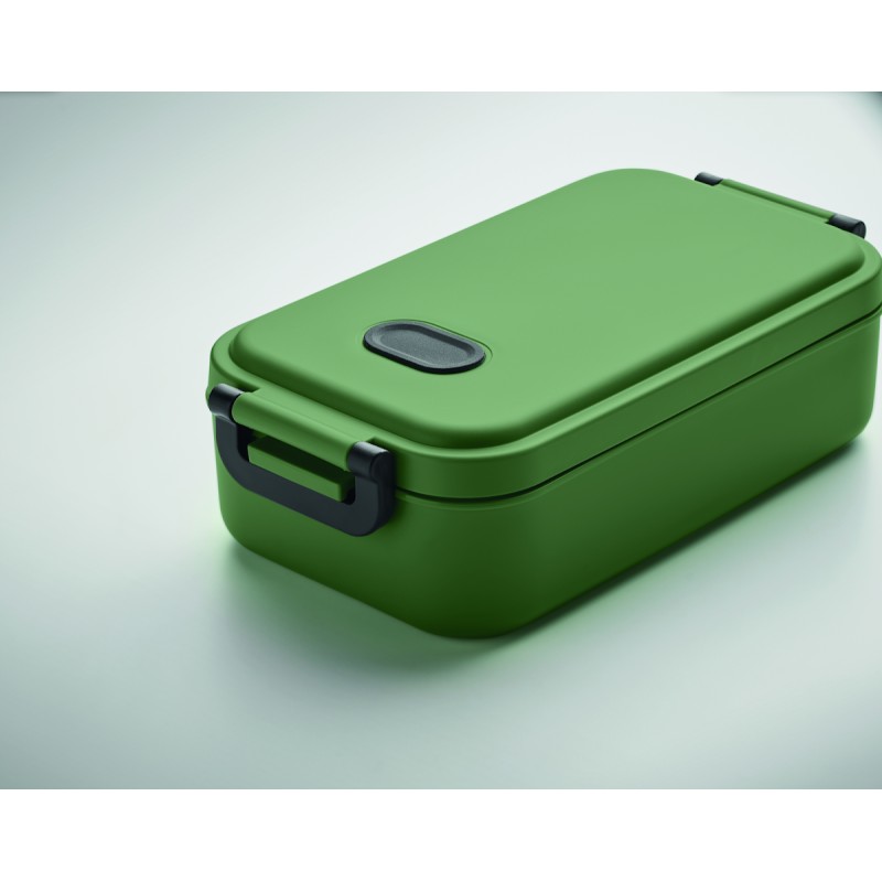 Boîte à lunch en PP avec couvercle hermétique, valve en silicone et deux boucles latérales. Capacité : 800 ml.