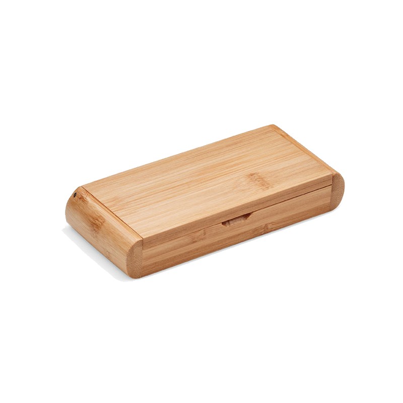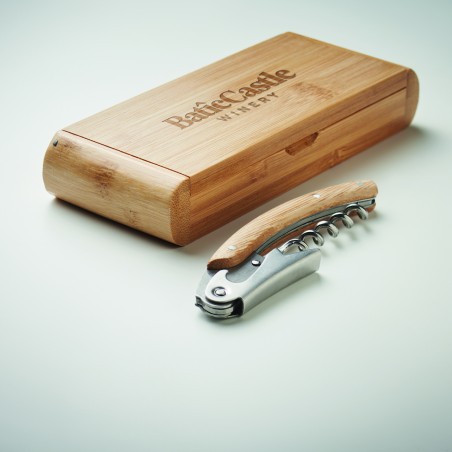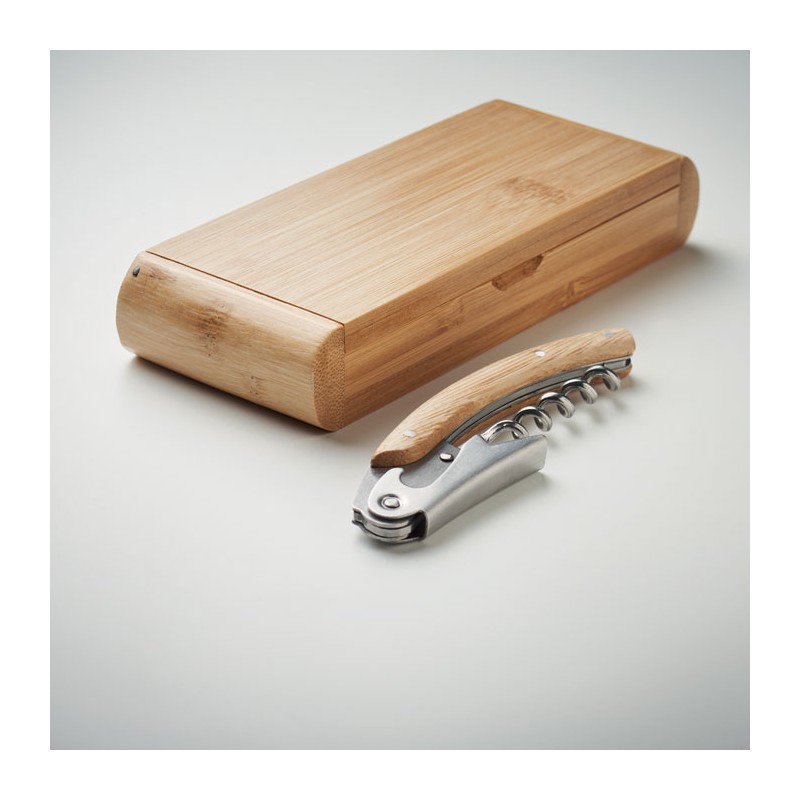 Limonadier en acier inoxydable avec double tire-bouchon et surface en bambou. Présenté dans une boîte cadeau en bambou. Le bambou est un produit naturel, et présente de légères variations de couleur, de décoration et de tailles.