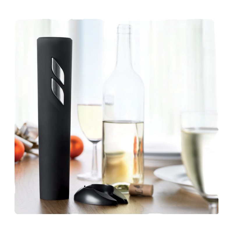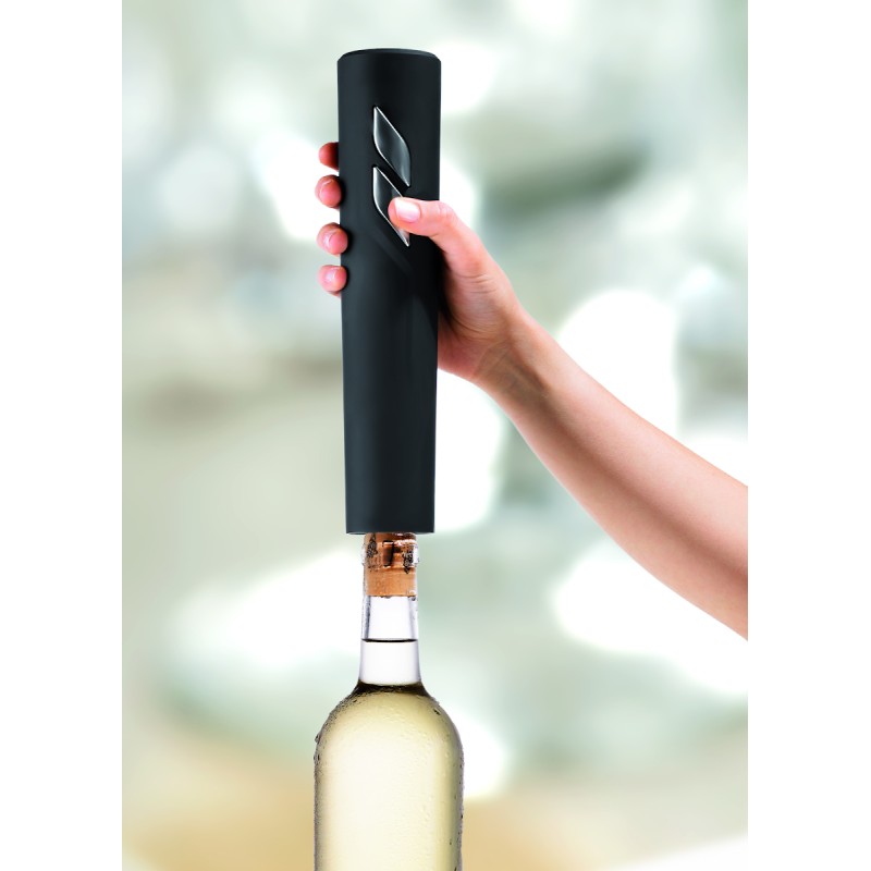 Tire Bouchon électrique en ABS, avec un fini noir mat. Comprend un coupe-capsule. 4 piles AA non-incluses.
