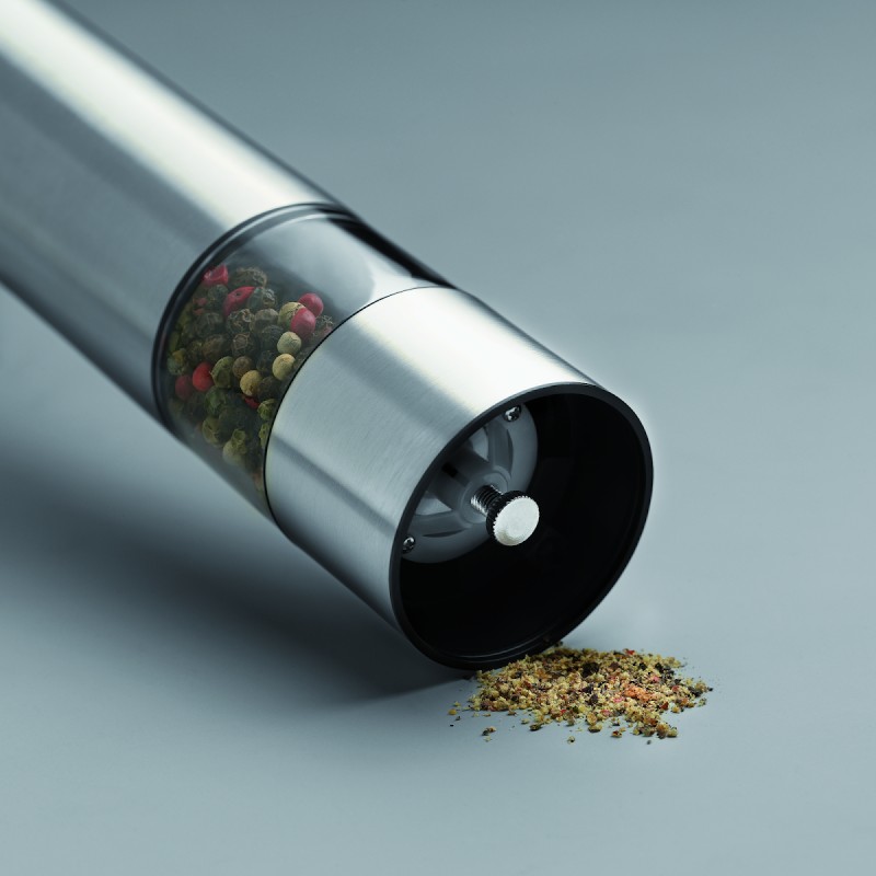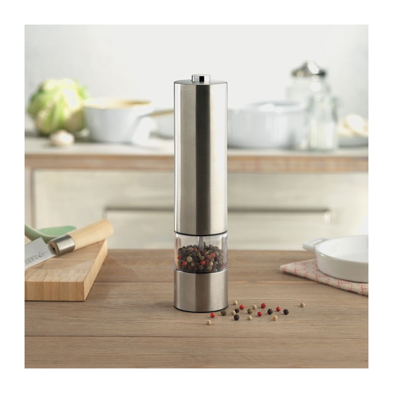 Moulin électrique à sel ou poivre en acier inoxydable.