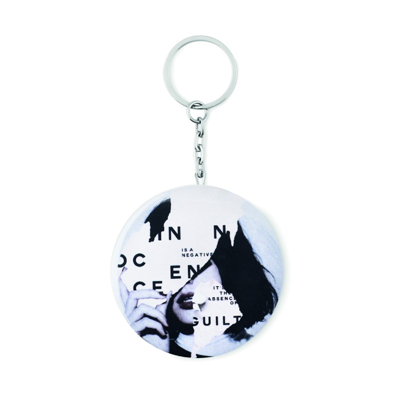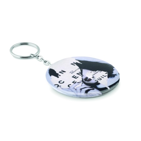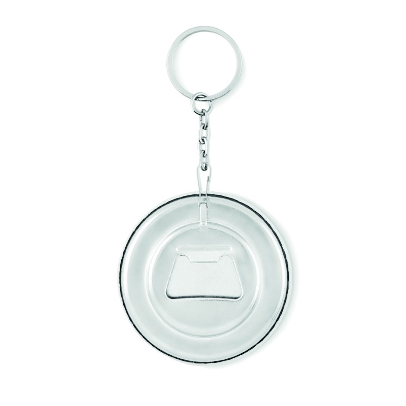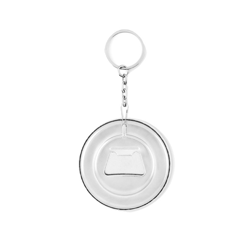 Décapsuleur porte-clés en métal avec insert papier. Ø5,8 CM. Quantité minimale par commande 25 pièces. Pour les commandes sans marquage, l'article n'est pas assemblé.