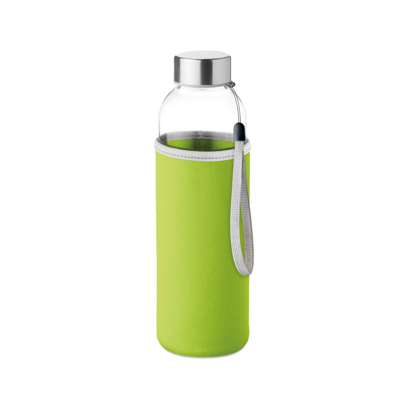 Bouteille en verre avec pochette en néoprène. Contenance : 500 ml. Ne convient pas aux boissons gazeuses. Anti fuite.