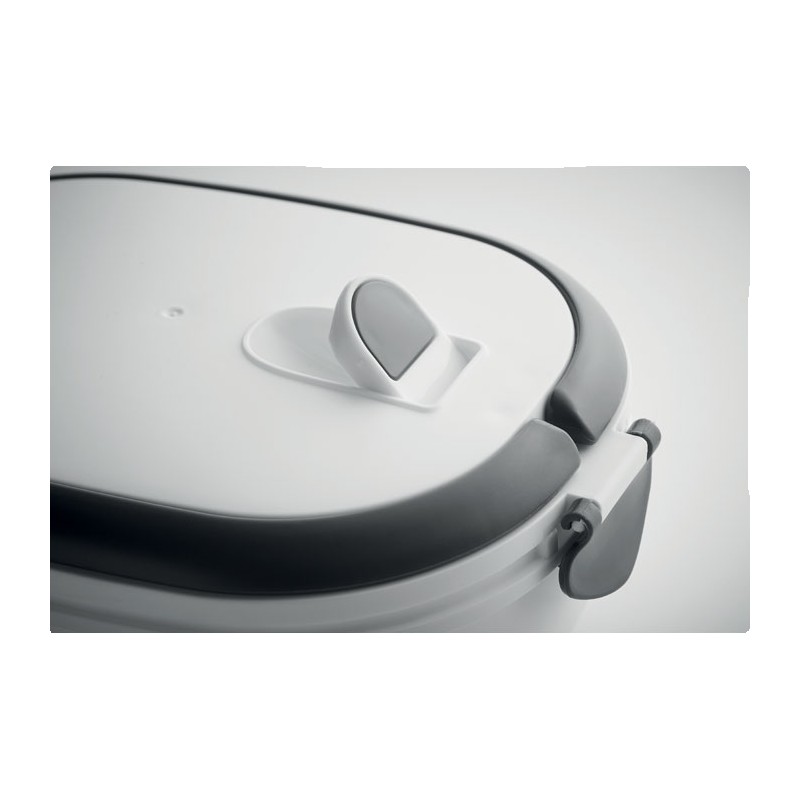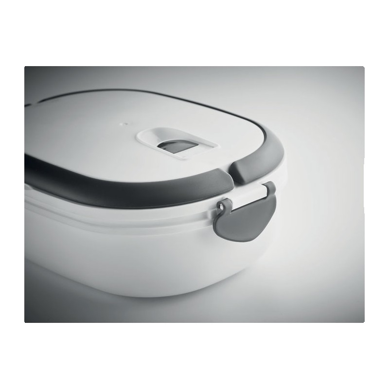 Lunch box avec couvercle hermétique en PP ( intérieur (>&)> extérieur). Passe au micro-ondes et au lave-vaisselle. Contenance de 750 ml.