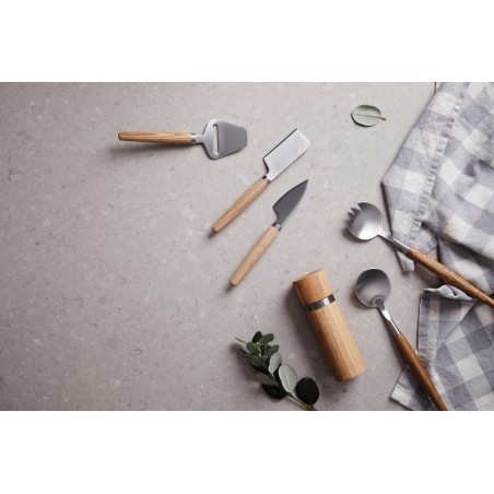 Un cadeau parfait pour les amateurs de fromage. Avec cet ensemble complet de trois couteaux à fromage, vous pourrez couper, trancher, râper, servir et tartiner toutes sortes de fromages à pâte dure ou molle. Les couteaux à fromage de cet ensemble raffiné ont des manches en bois de frêne et des lames en acier inoxydable, pour une touche de style supplémentaire sur votre plateau de fromage.