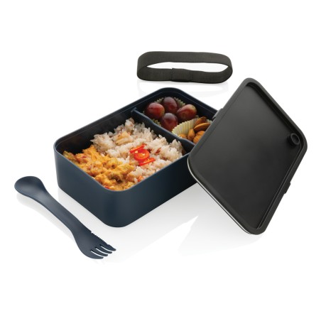 Lunch box de 0,8 litre élégante pour un mode de vie sain ! Suffisamment grande pour transporter sandwichs et salades. Fabriquée avec 93 % de PP recyclé certifié GRS. La certification GRS garantit une chaîne d'approvisionnement entièrement certifiée des matériaux recyclés. Comprend une cuillère/fourchette pratique et une sangle élastique. La boîte à lunch est facile à nettoyer, mais ne doit pas être mise au lave-vaisselle ni utilisée au micro-ondes.