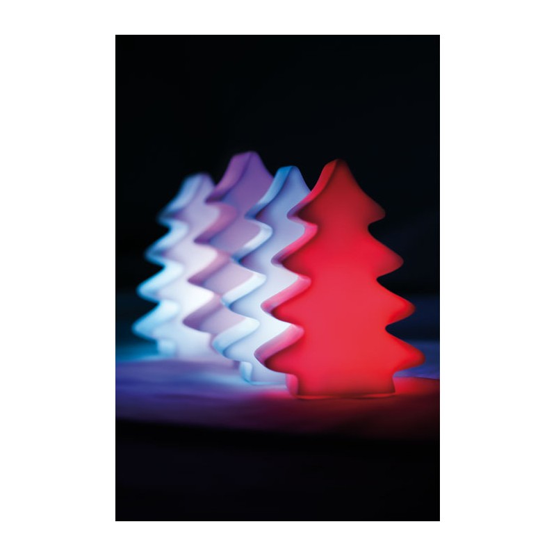 Lampe LED en PVC en forme de sapin de Noël qui change de couleur (blanc, bleu, violet, rouge, jaune et vert). 3 piles LR44 fournies.