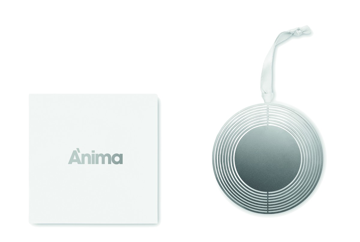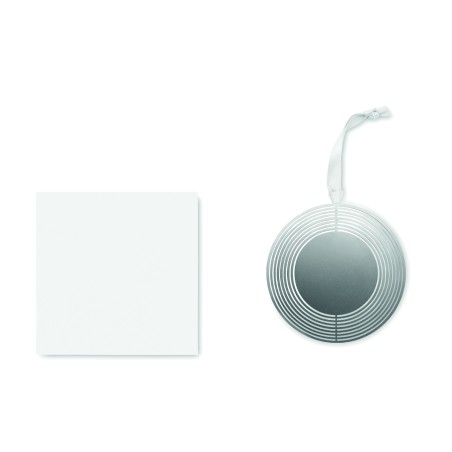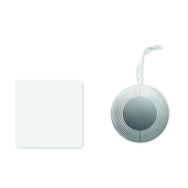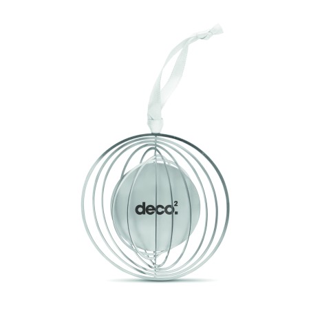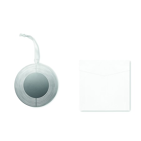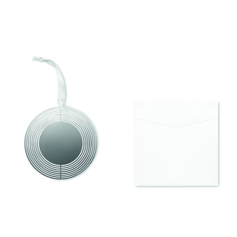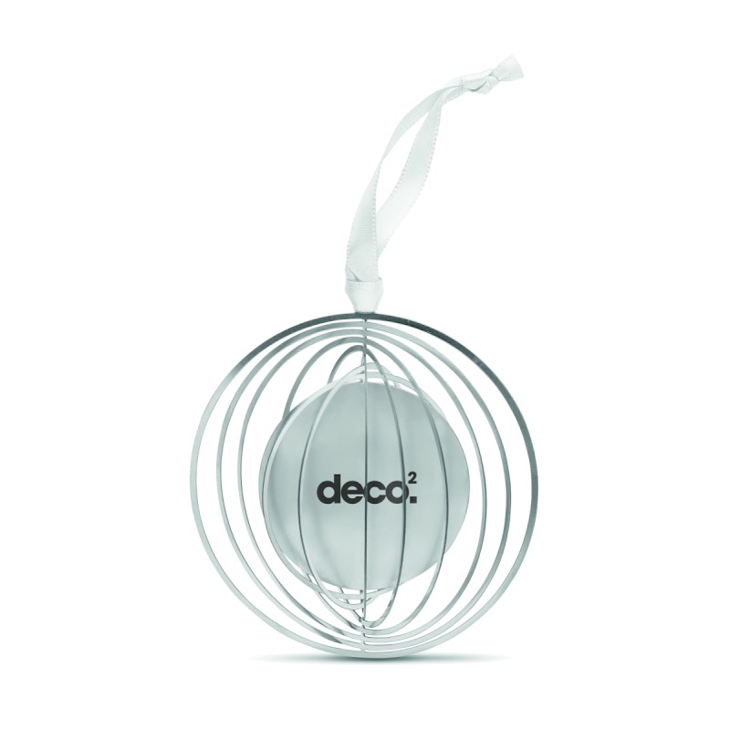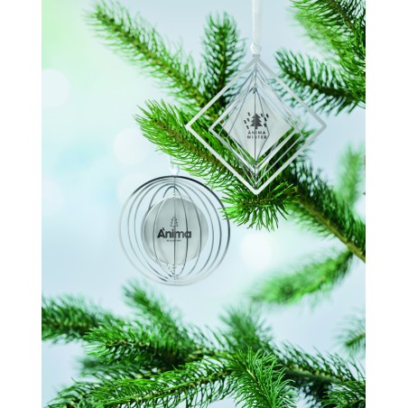 Décoration de Noël de forme ronde en acier inoxydable avec ruban présenté dans une enveloppe cadeau. Facile à plier en une jolie boule.