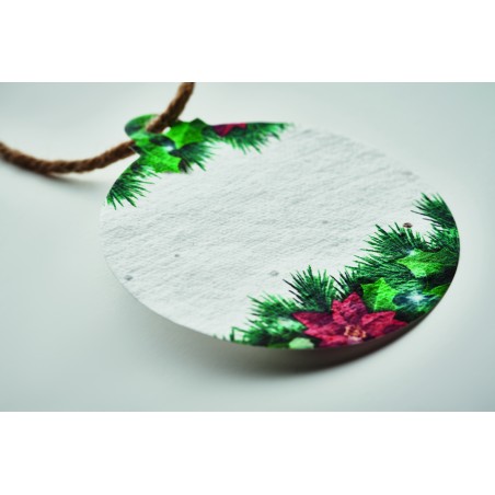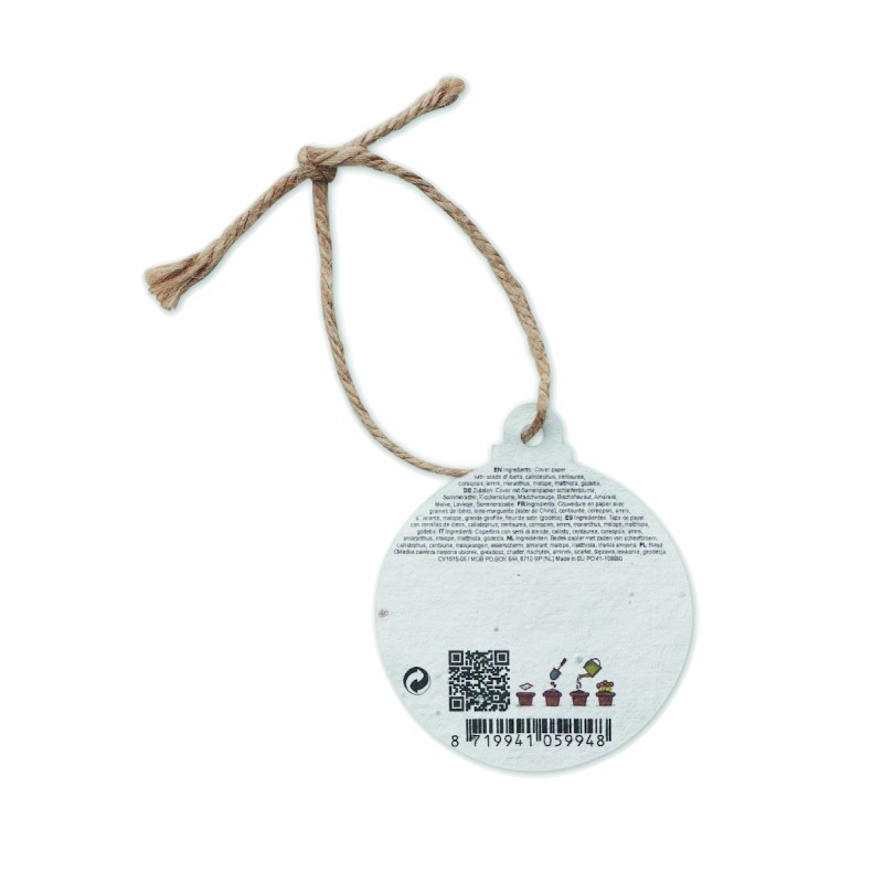 Papier semences de mélange de fleurs sauvages dans une boule de Noël en forme de corde de jute. Après utilisation, plantez le papier et regardez-la se transformer en une prairie de fleurs sauvages. Fabriqué dans l'UE. Décorez votre arbre de Noël ou votre maison avec cet ornement en papier. Après les fêtes, vous pouvez utiliser cet ornement pour faire pousser un mélange de fleurs sauvages dans votre jardin. Un article vraiment durable et réutilisé !