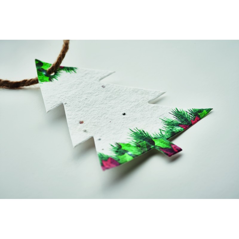 Papier semences de mélange de fleurs sauvages dans une décoration de Noël en forme d'arbre avec une corde de jute. Après utilisation, plantez le papier et regardez-la se transformer en une prairie de fleurs sauvages. Fabriqué dans l'UE. Décorez votre arbre de Noël ou votre maison avec cet ornement en papier. Après les fêtes, vous pouvez utiliser cet ornement pour faire pousser un mélange de fleurs sauvages dans votre jardin. Un article vraiment durable et réutilisé !