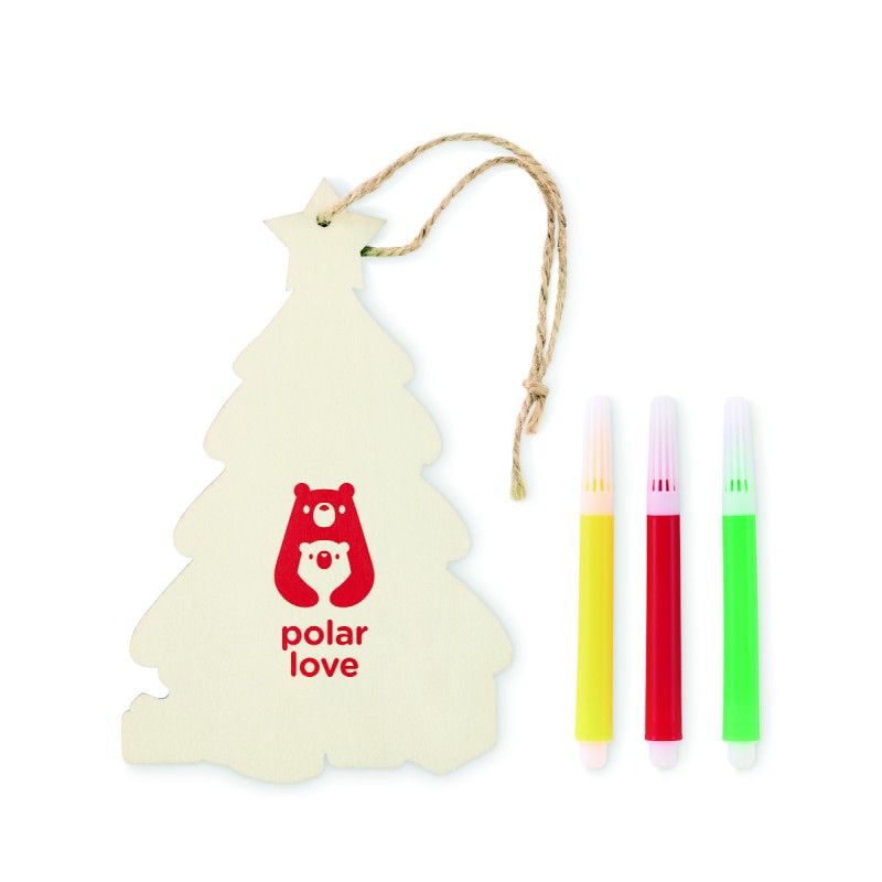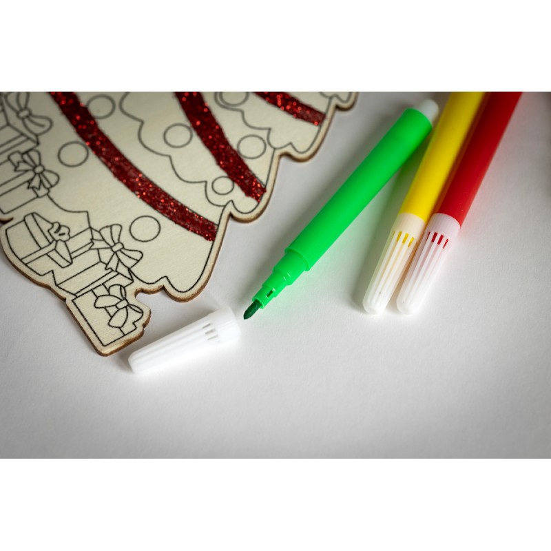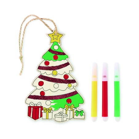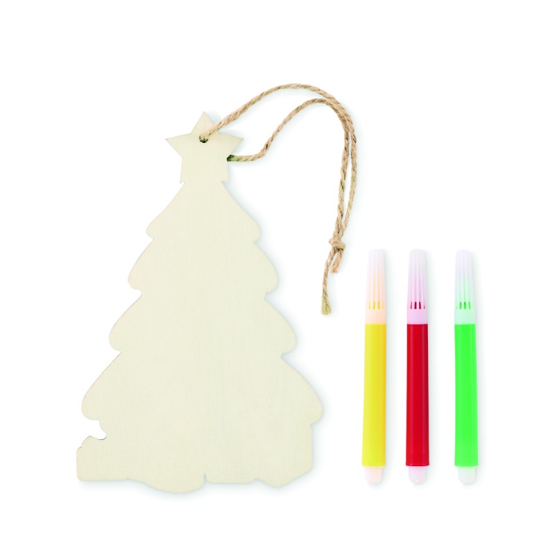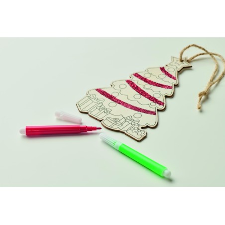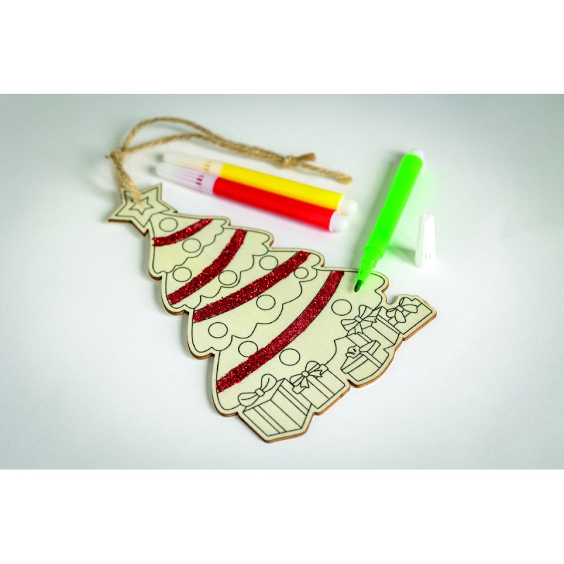 Décoration de Noël en bois de peuplier à colorier, avec 3 feutres et un cordon en jute.