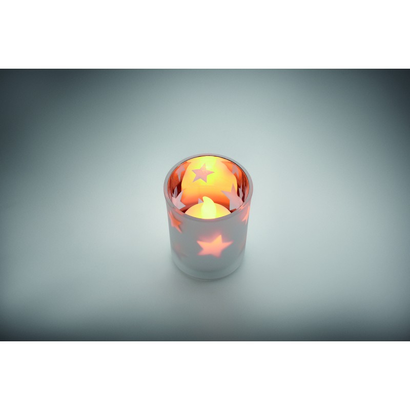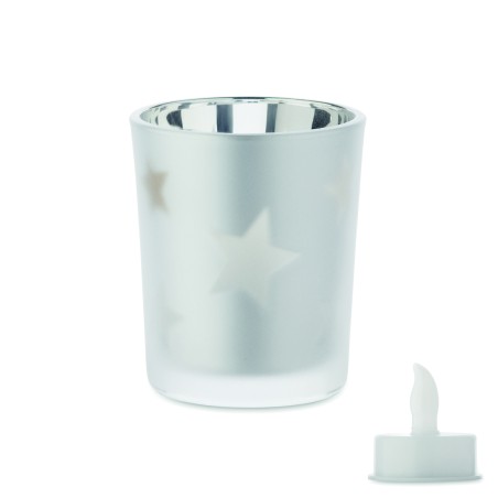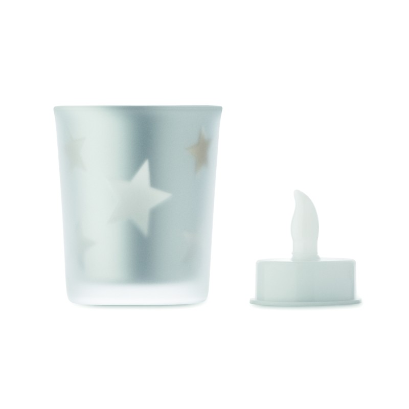 Bougie LED en PP dans un support en verre. 1 pile bouton CR2032 incluse.