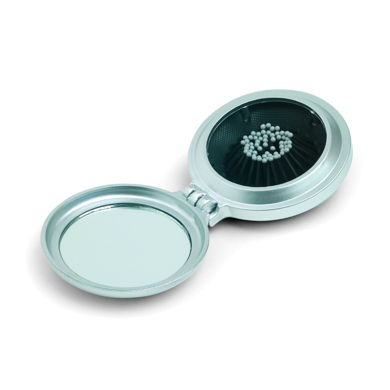 Brosse/miroir pliable. Plastique. Fini argenté mat.