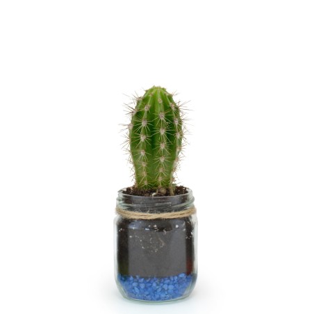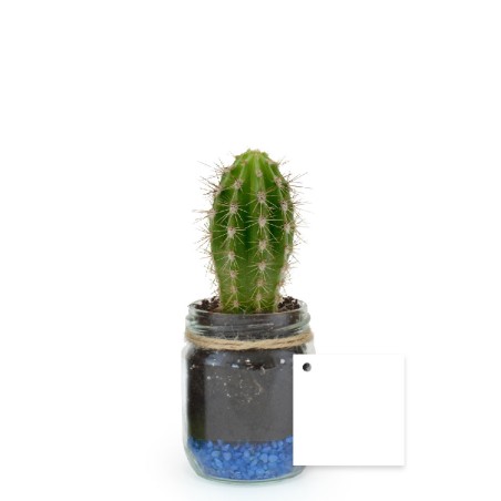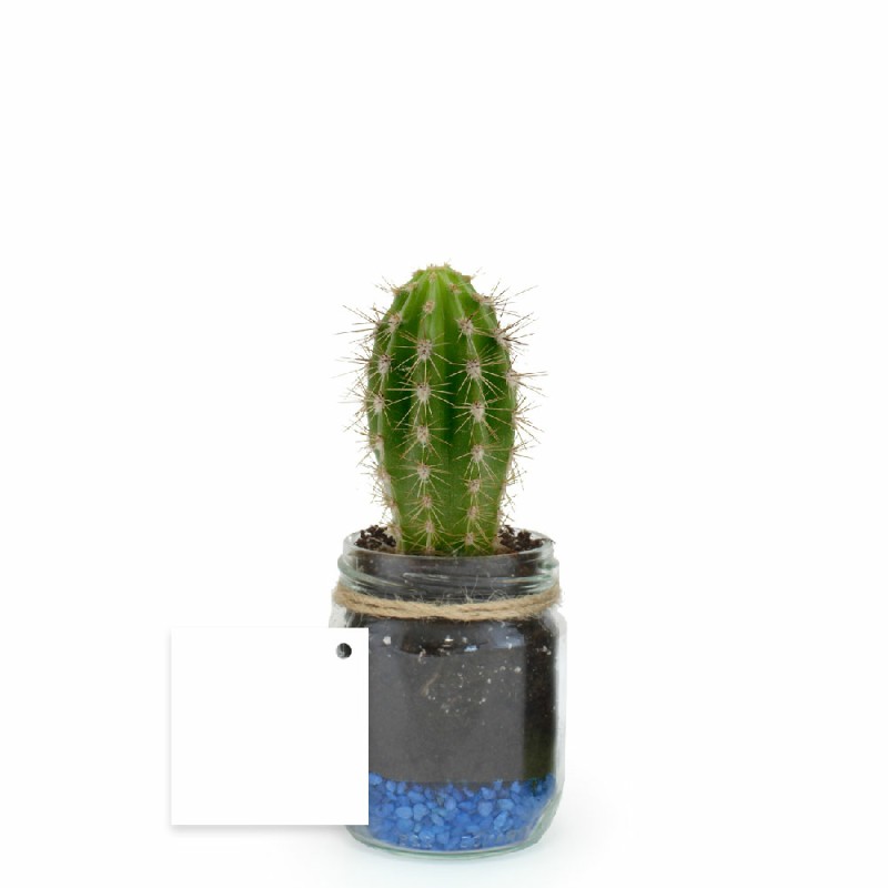 Plante de Ø60mm et gravier en bocal en verre de Ø60mm x H85mm emballée par du papier fleuriste ou papier kraft. Du raphia décoré d'une étiquette en papier 350g/m² de 50x50mm maintient le tout. Ne peut être envoyé en carton individuel.