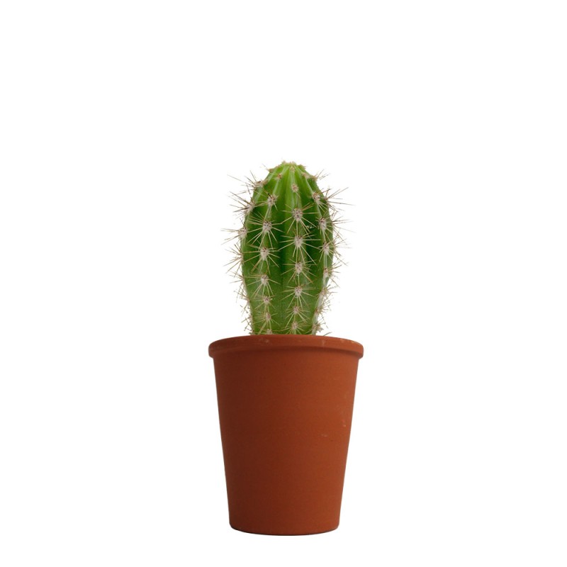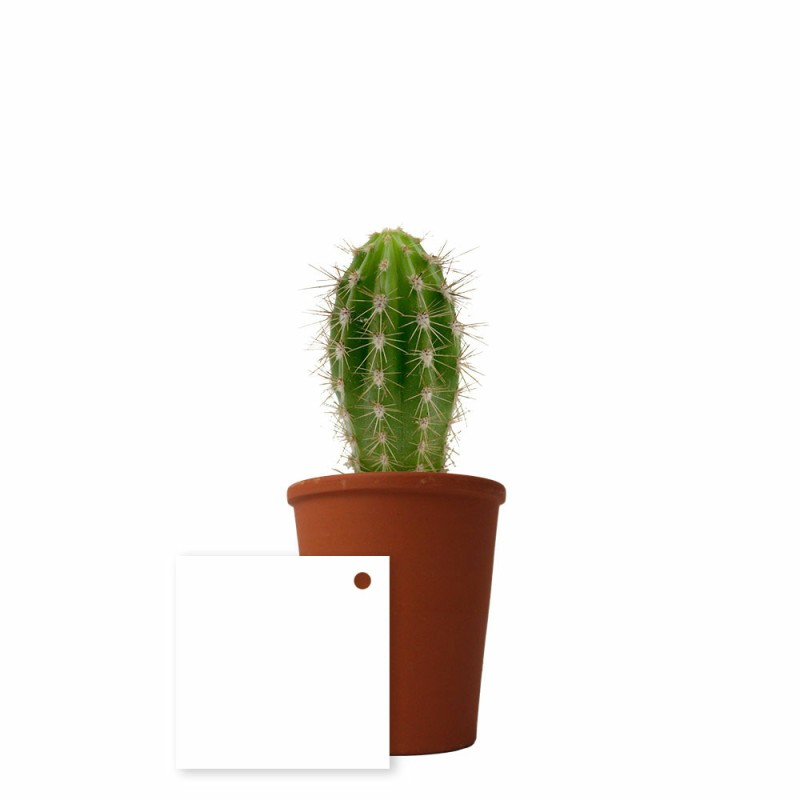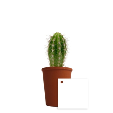 Plante de Ø60mm en pot terre cuite de Ø70mm x H75mm emballée par du papier fleuriste ou du papier kraft. Du raphia décoré par une étiquette en papier 350g/m² de 50x50mm maintient le tout.