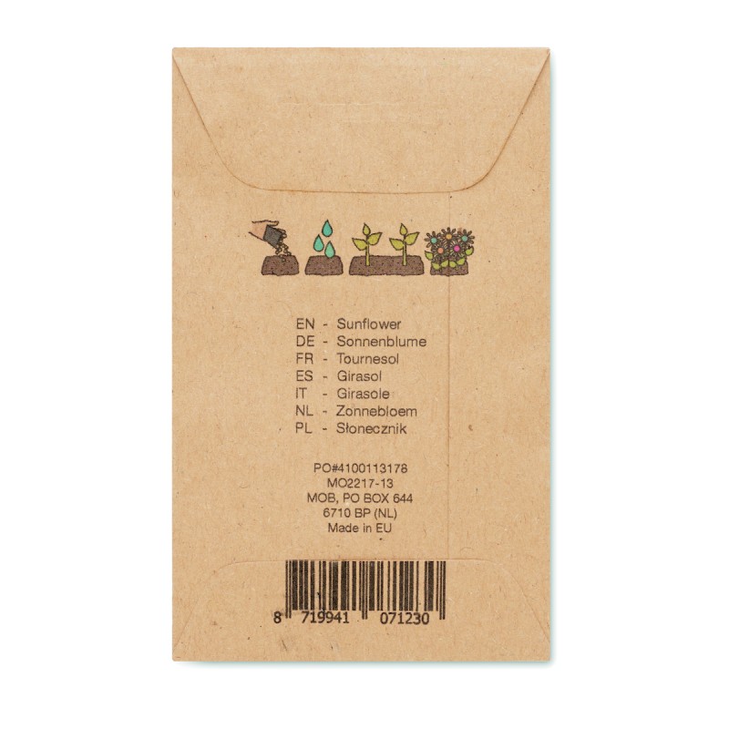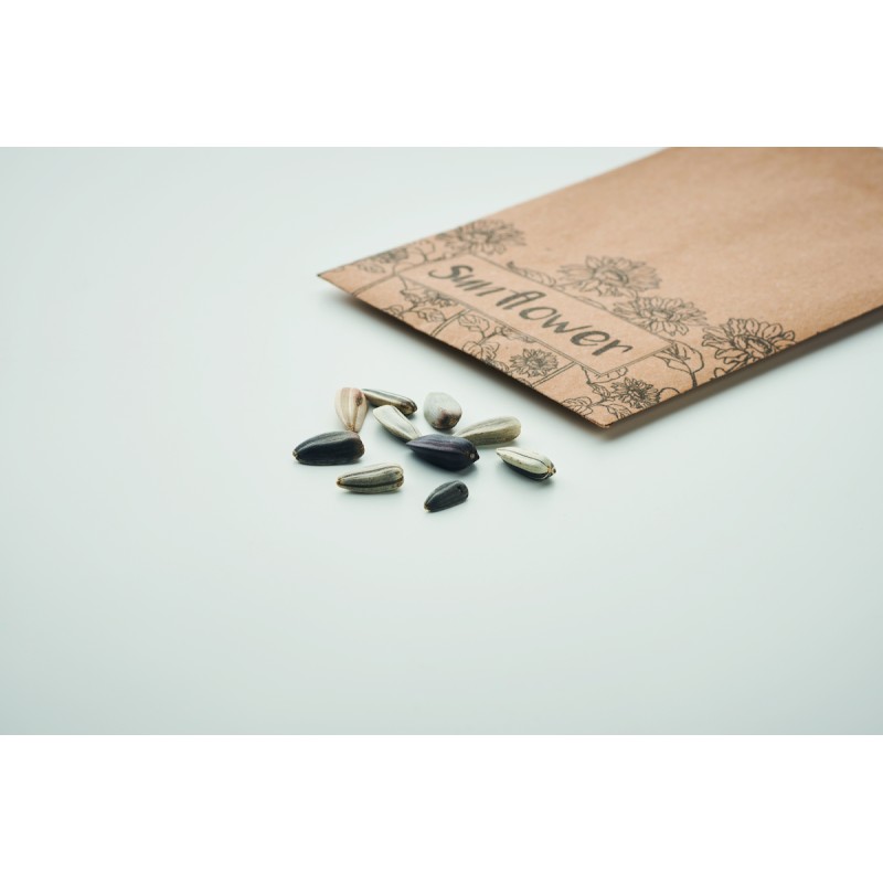 Graines de tournesol dans une enveloppe kraft. (Helianthus debilis)