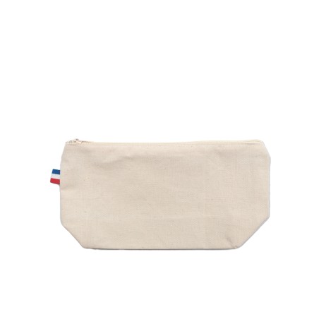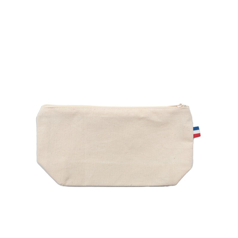 Trousse soufflet fond Elise, dimensions 22x12x5cm, Confection France (atelier BF ou ESS), en 100% coton - tissé France, avec ZIP. Étiquette intérieure de composition avec logo Bonjour François, galon BBR sur le coté de la trousse. 200 pièces par carton. Demi-natté 240g/m².