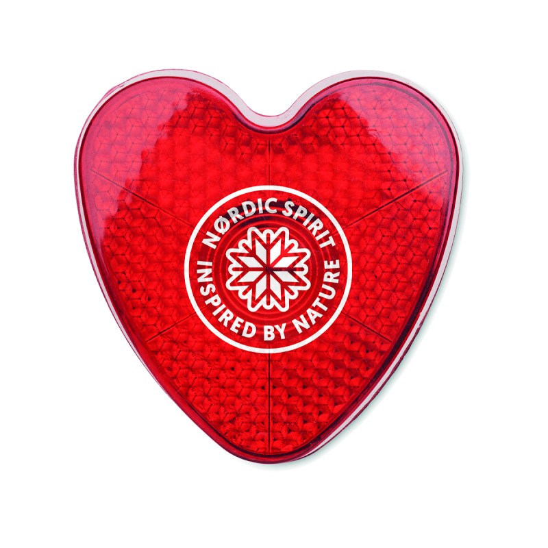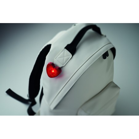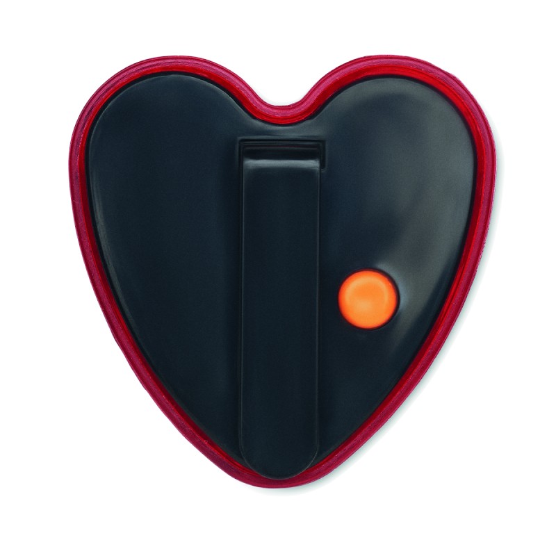 Lampe rouge à réflecteur en forme de coeur en ABS avec clip arrière. Deux modes d'éclairage : lumière vive/clignotante. Comprend 2 piles LR44 remplaçables.