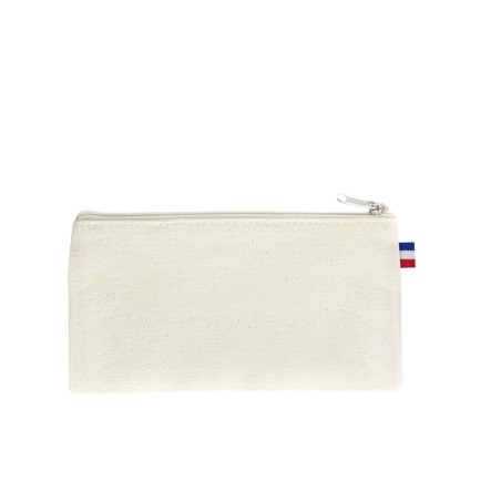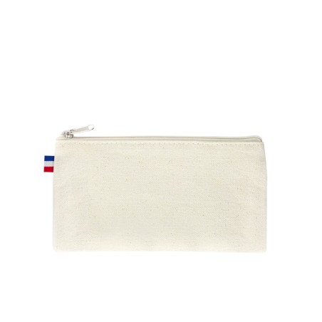 Trousse Penelope, dimensions 22x12cm, Confection France (atelier BF ou ESS), en 100% coton - tissé France, avec ZIP. Étiquette intérieure de composition avec logo Bonjour François, galon BBR sur le coté de la trousse. 300 pièces par carton. Demi-natté 240g/m².