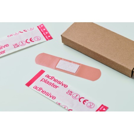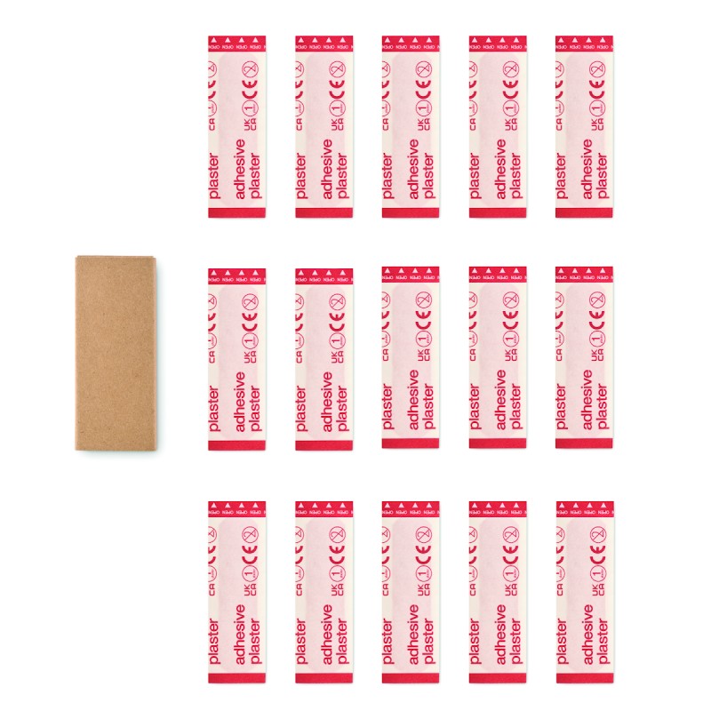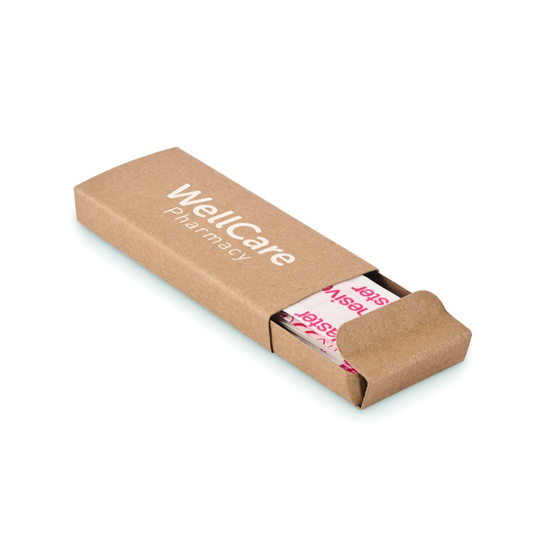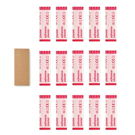 15 pièces de pansements adhésifs dans une boîte en papier recyclé. Non disponible à la vente en Suisse.