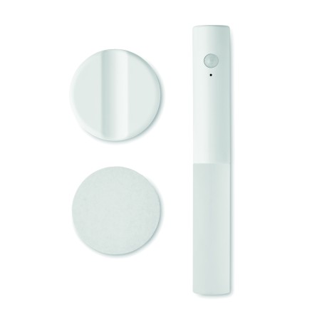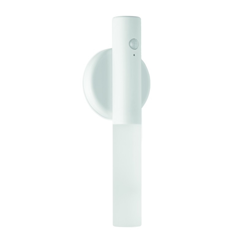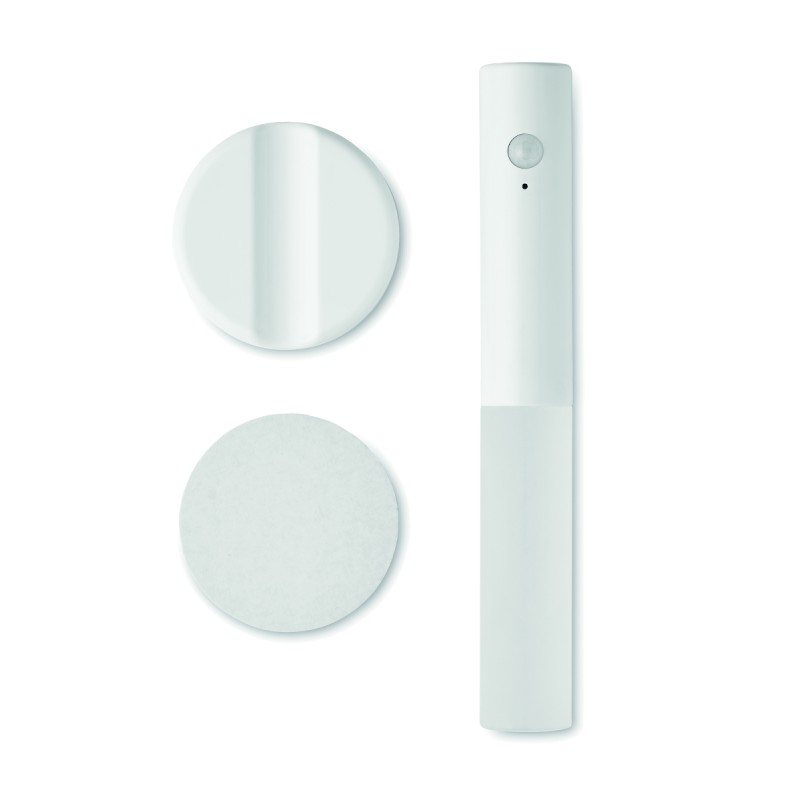 Lampe à capteur de mouvement en ABS et acrylique avec base magnétique. Batterie rechargeable de 300 mAh intégrée et câble de chargement. La base peut être fixée au mur à l'aide de l'autocollant 3M inclus.Idéal pour les placards, chambre d'enfant, couloirs...