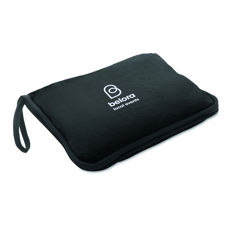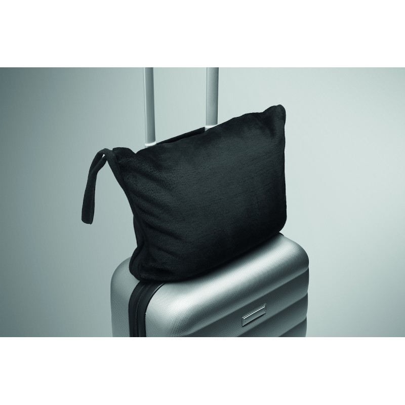 Ensemble de couverture et/ou d’oreiller de voyage 2 en 1 en flanelle de 220 gr/m². L’article peut être plié. Comprend un passant pour trolley et une poignée en polyester RPET 600D.