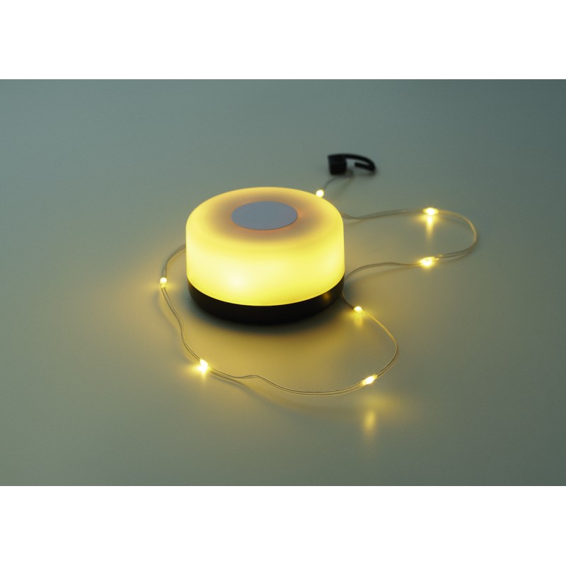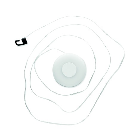 Guirlande lumineuse à LED rétractable en ABS. Comprend un câble rechargeable de type C et une batterie de 1000 mAh. 5 niveaux de luminosité. Peut être utilisée comme lampe portable (suspendue) Longueur du câble : 8m