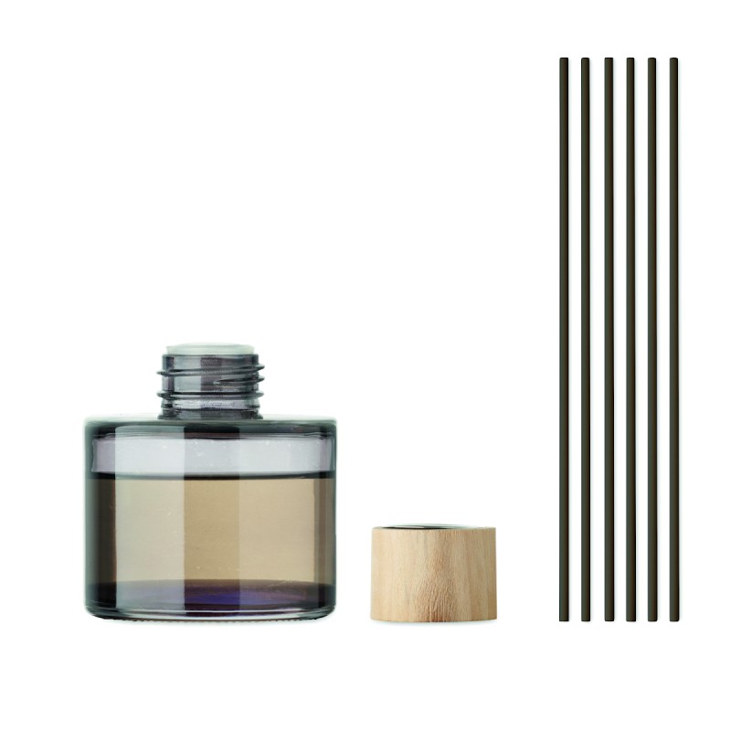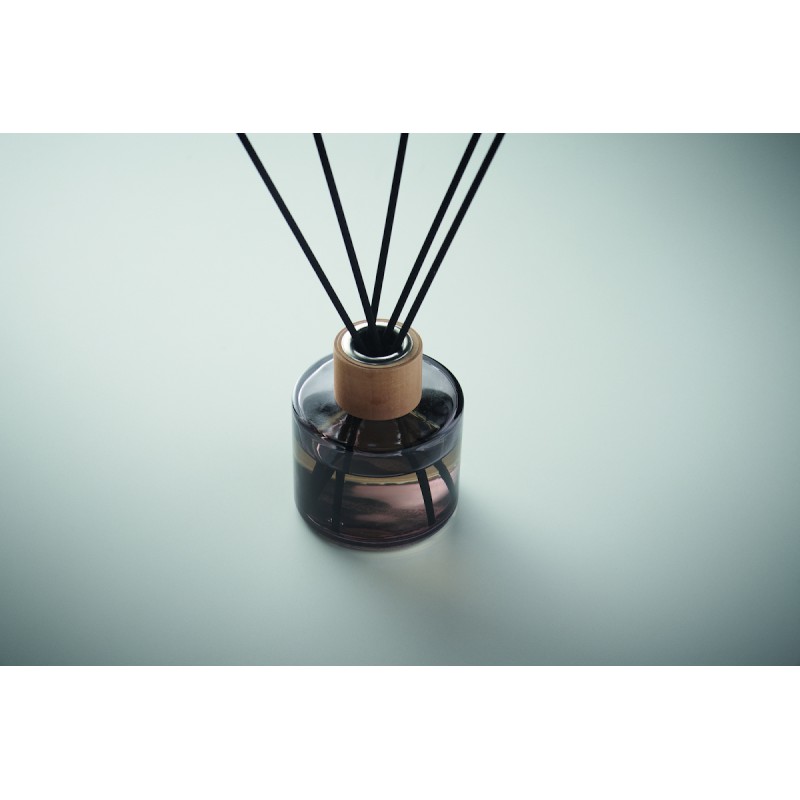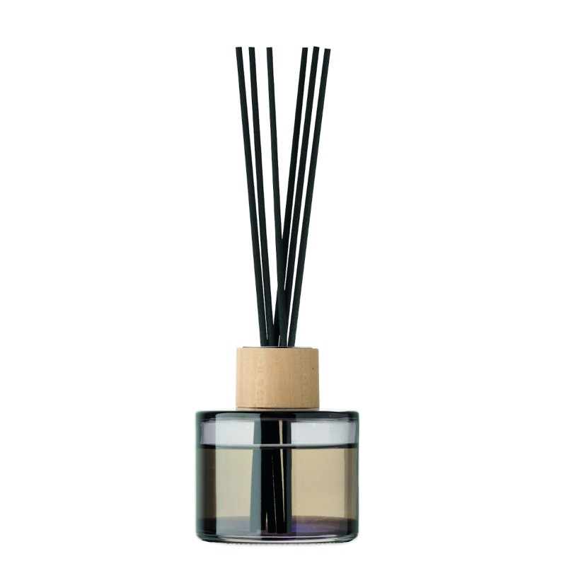 Diffuseur de parfum avec 6 bâtonnets en bois. Parfum : vanille. Capacité 100 ml.